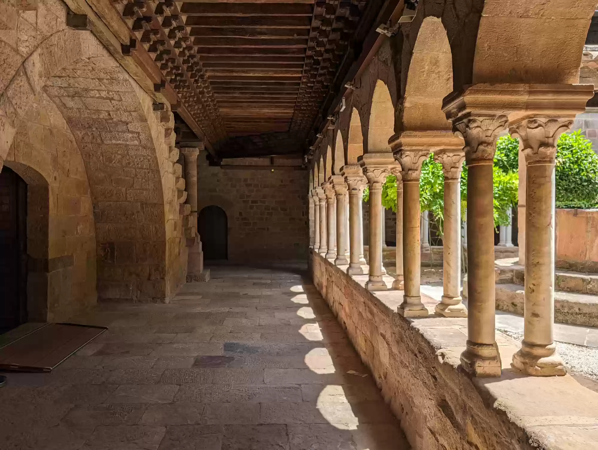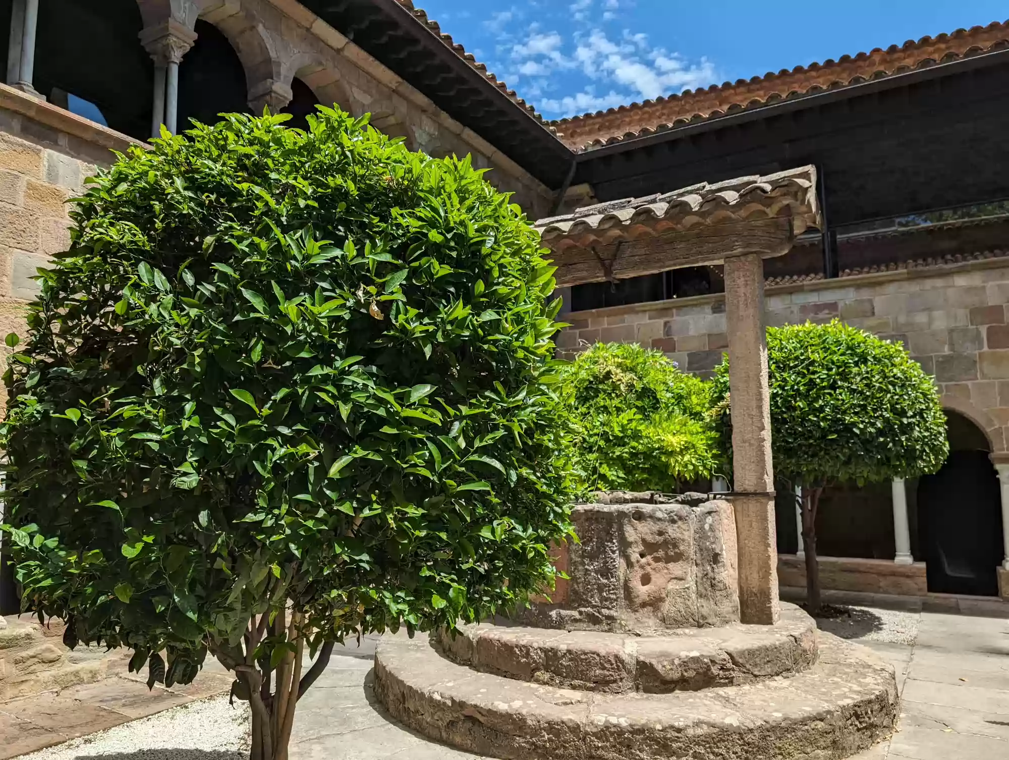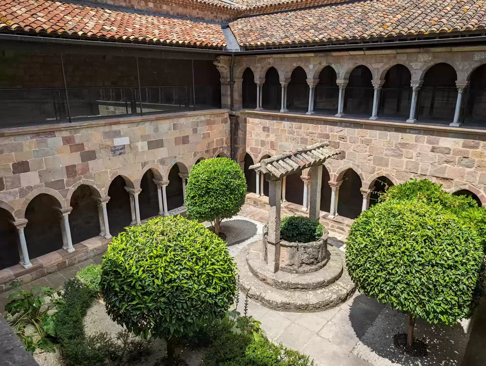 PXL_20240615_105254155 Cloister, 13th century, built of Esterel (a nearby volcanic mountain) stone and Carrara marble columns. The wooden ceiling was built in the 14th century, when...