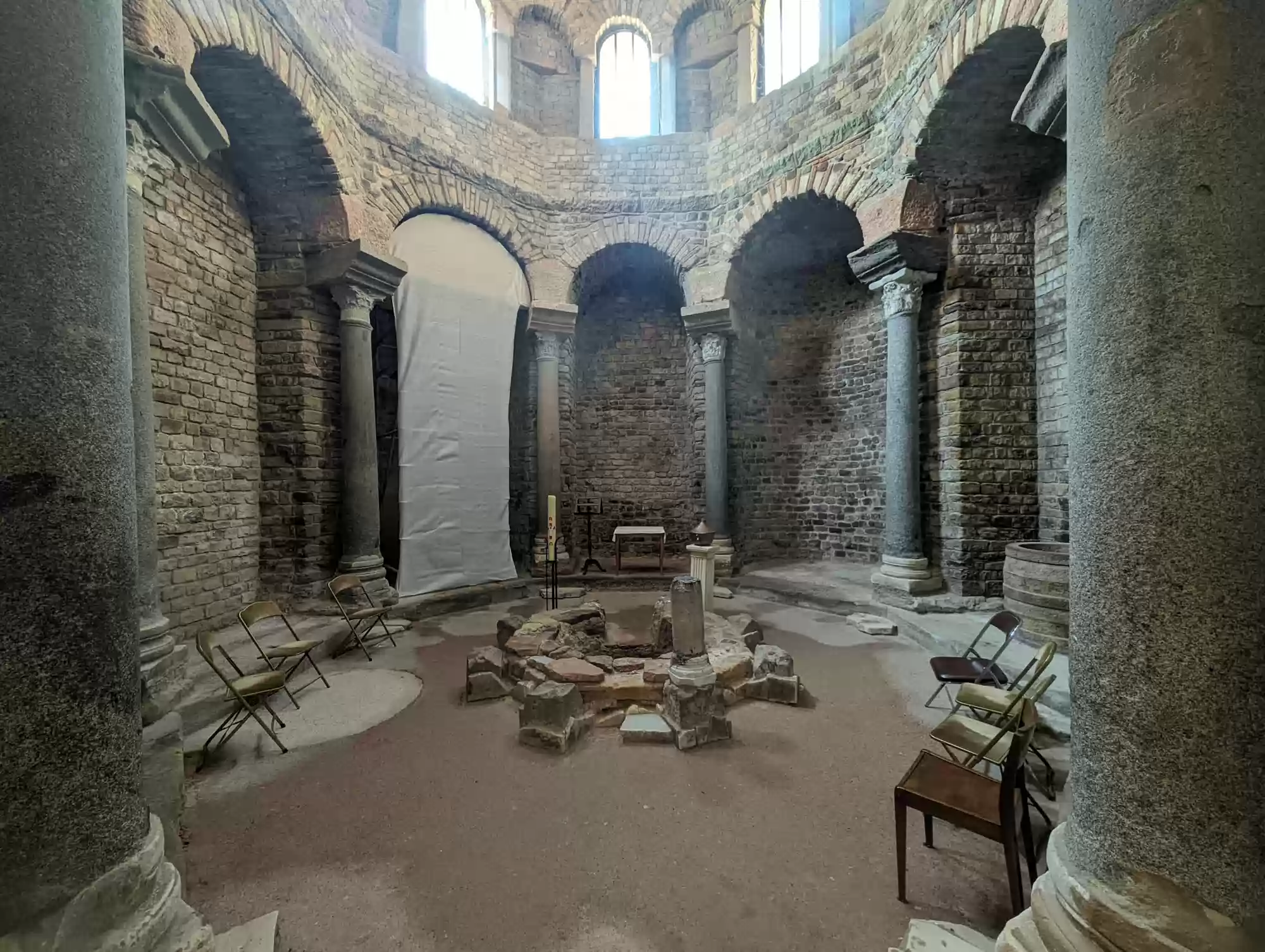 Cloister19 images Saint Leonce, cathedral of Frejus. Baptistery: 5th century; bell tower: 13th century (octogonal part: 16th century); bishop palace: 19th century. The current… Left: baptistery. Right: bishop palace. Baptistery, 5th century. Baptistery, 5th century. Staircase leading to the cloister. Narthex, supporting the bell tower. Saint-Etienne church, 11th century. Saint-Etienne church, 11th century. Saint Margaret panel, mid-15th century, Italian. Saint-Etienne church, 11th century. Notre-Dame, before the 13th century. Notre-Dame, before the 13th century. Stalls. Notre-Dame, before the 13th century. Malpasset dam Labels