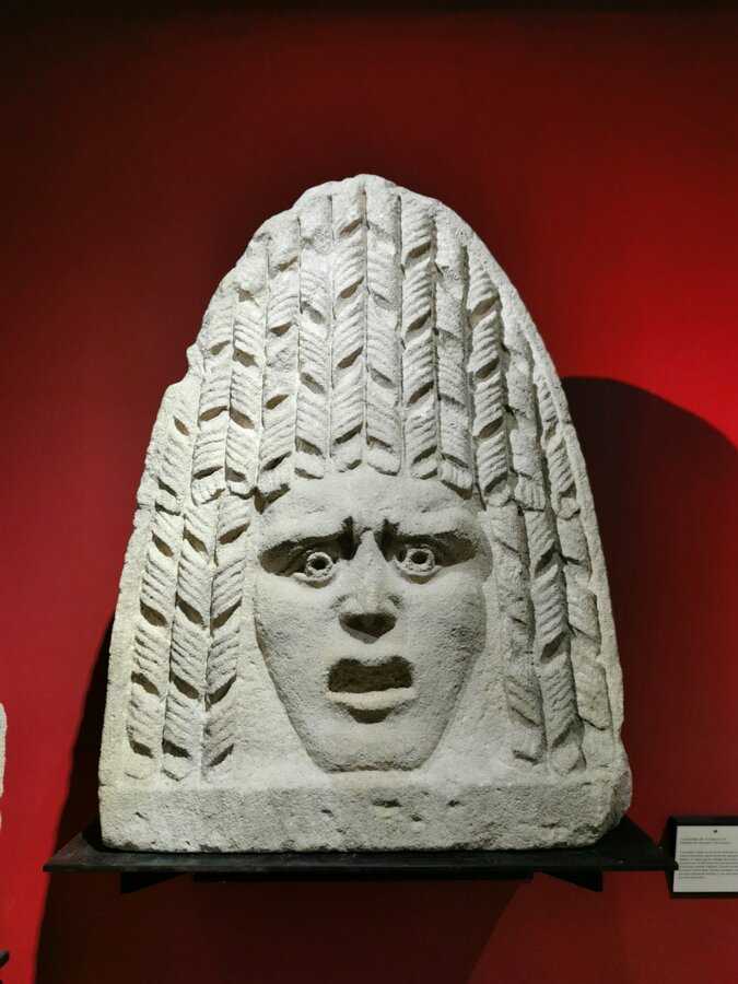 This mosaic is one of the six polychrom pavings (200 m2 of decor) in the Peacock domus, a large house (middle of Ile century…