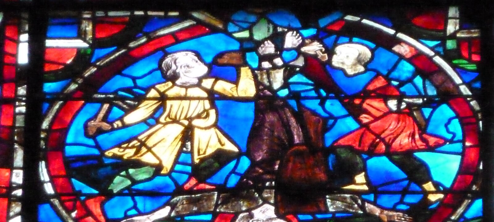 South rose, 15th century by André Robin. Christ of the Apocalypse transforming the times revolving around him.