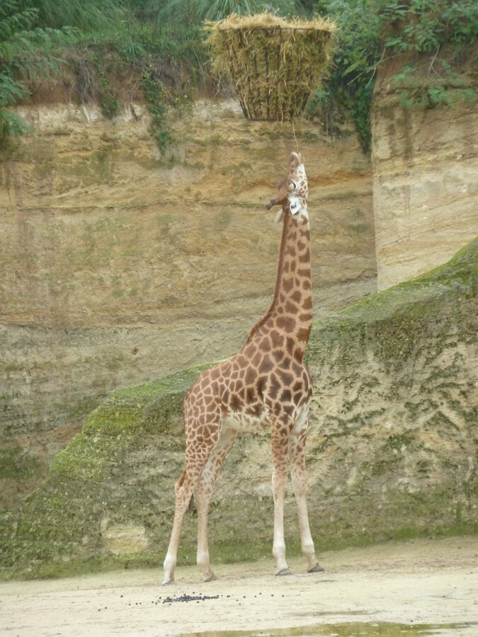 Giraffes darken as they grow old. The giraffe on the right-hand side is above 25 years old, the life expectation of giraffes, Old giraffe. Old giraffe. FelidsMonkeys Labels