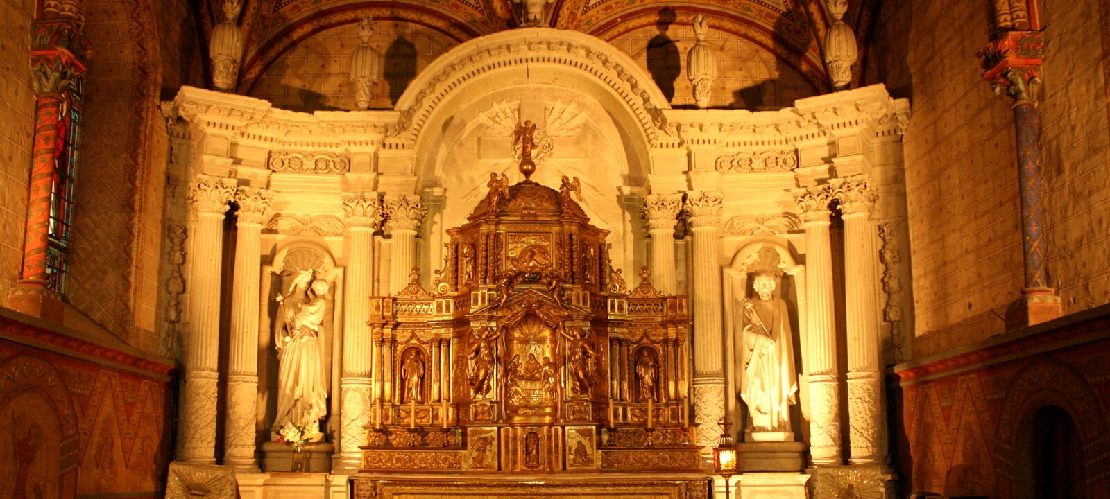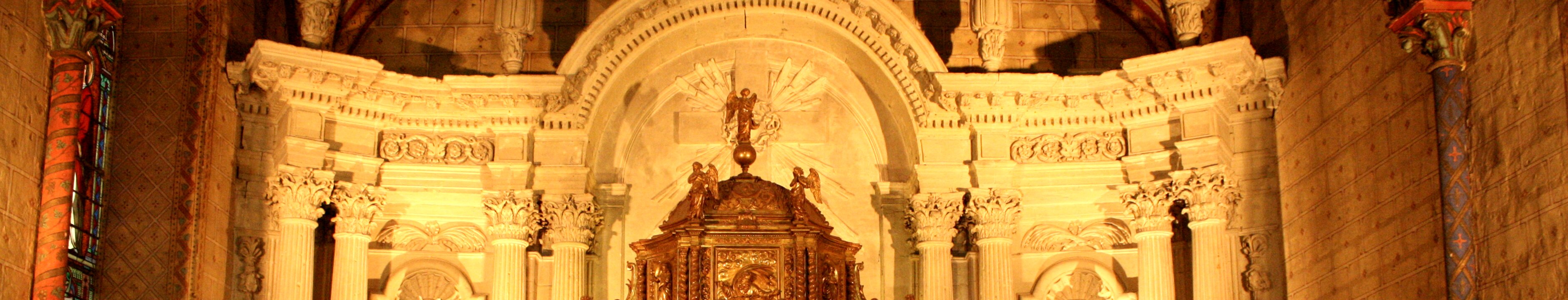 Church originally built in the 12th century, enlarged in the 15th century. The 17th century altar comes from the abbey church of the monastic city . The altar was moved here after the revolution (late 18th century). Jesus Christ, 15th century. Monastic City Labels