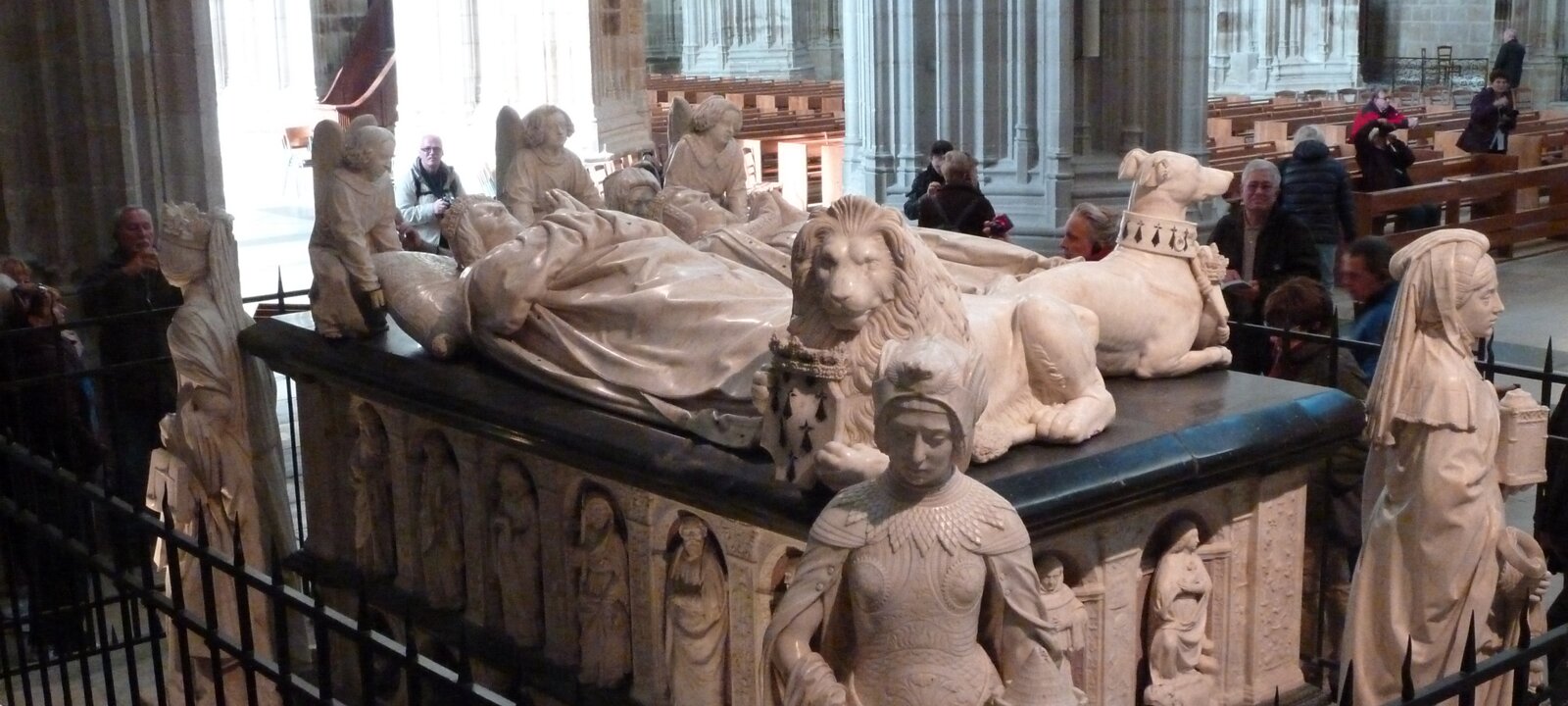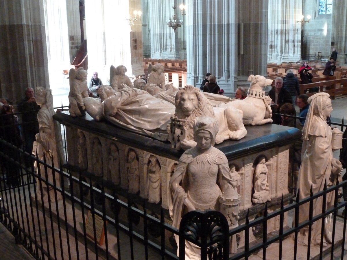 Saint-Peter-and-Saint-Paul cathedral, built between 1434 and 1891 in the gothic style. The apse and north transept were built in the 19th century, after the destruction of the city wall. The facade was completed in the 15th century. Recumbant effigy of François II, duke of Brittany, and his second wife, Marguerite de Foix, parents of Anne of Brittany. The tomb was built at the… CastleLes machines de l'Ile Labels