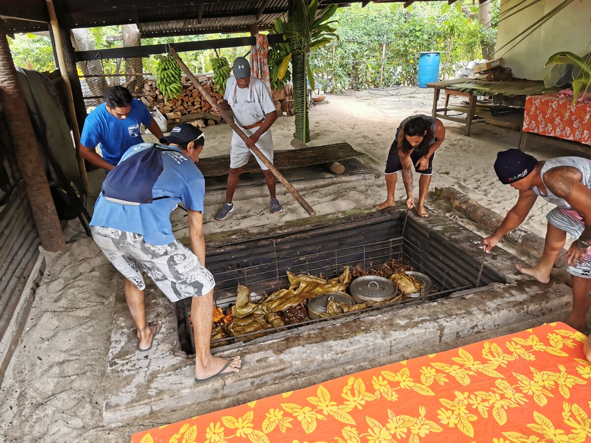 Traditional Tahitian oven at Tara's restaurant. Traditional Tahitian oven at Tara's restaurant. South Labels