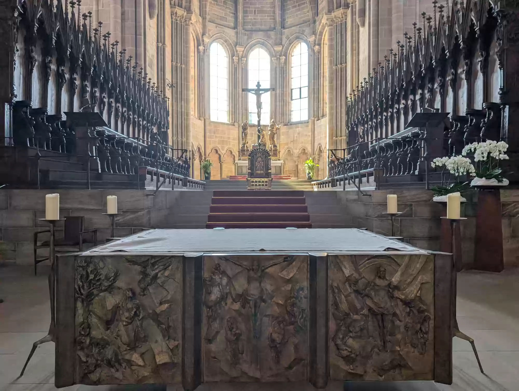 Tomb of Heinrich II and his wife Kunigunde by Tilman Riemenschneider, built in 1499-1513.