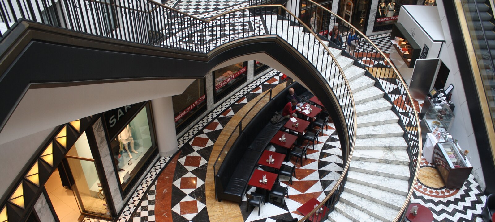Quartier 206 luxury shopping center, designed by IM Pei, built by Cobb, Freed & Partners. Galeries Lafayette Labels