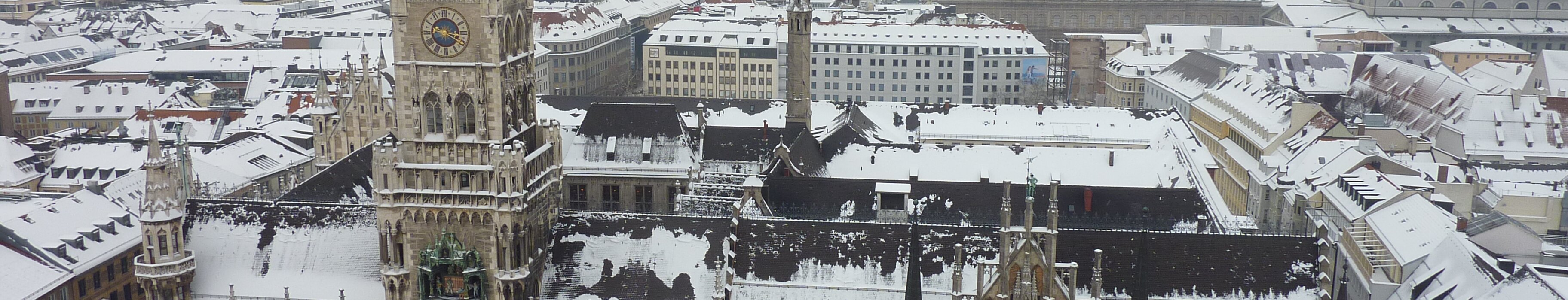 Neues Rathaus, the new townhall, built 1867-1909 in neogothic style. The tower is 100 high and dominates Marienplatz (Marien square). Neues Rathaus and Frauen Church. Mechanism animated twice a day, featuring dances and a knights fight. Animated mechanism during the dances portion. The tower of the Rathaus on Marienplatz. Inner courtyard of the new townhall. Staircase in the inner courtyard of the new townhall. Gargoyle on the new townhall. Marienplatz from the new townhall. Marienplatz. Frauen churchResidenz Labels