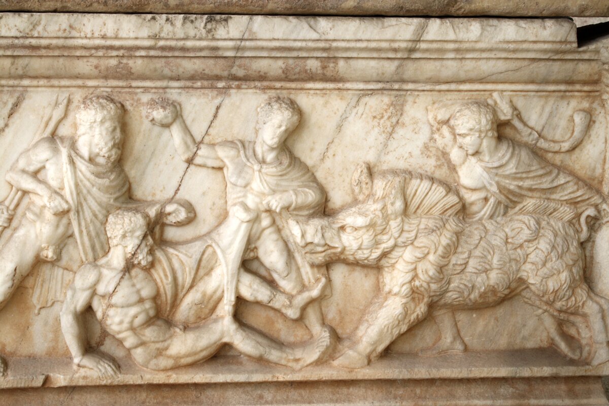 Melian relief with a scene of Hercules killing the centaur Nessos. Just before the middle of the 5th century BC, from a grave at Troizen.