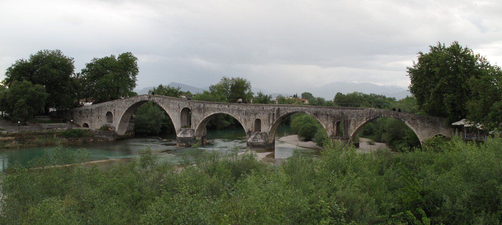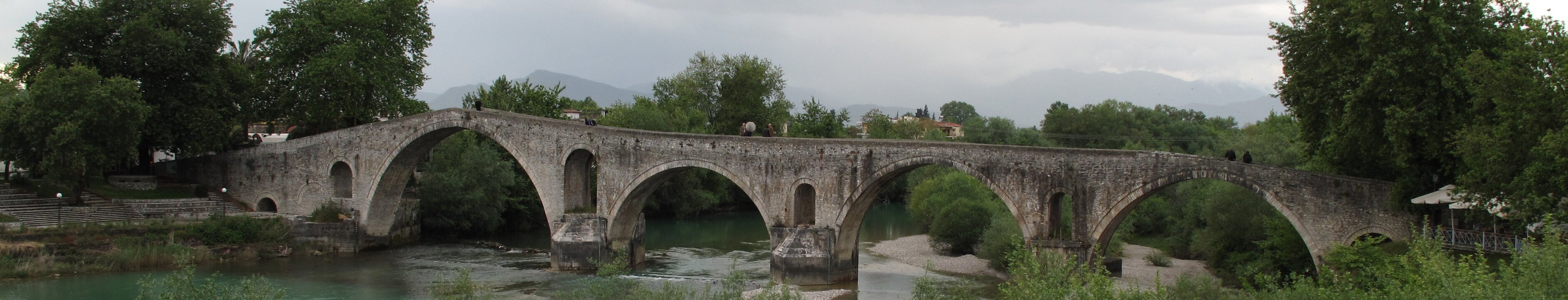 The old bridge, built between the Roman Era and the 17th century. Byzantine church of Parigoritria, built 1285-1289. Ioannina Labels