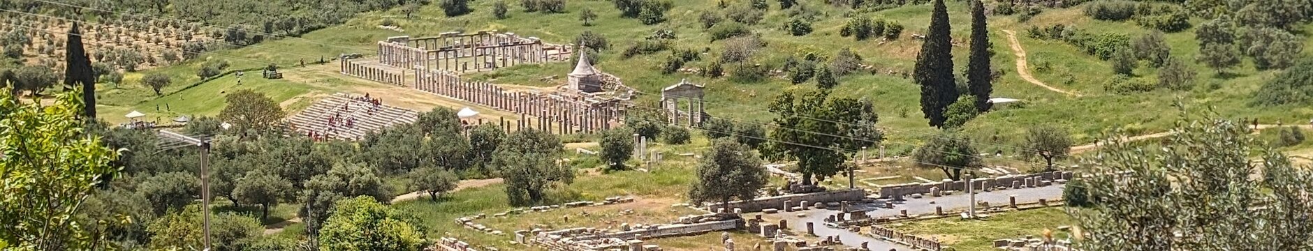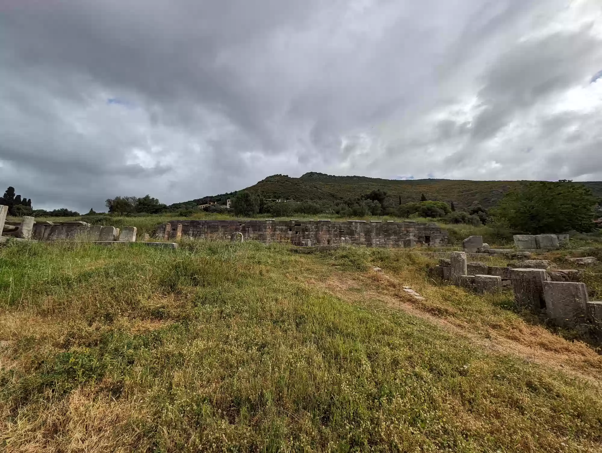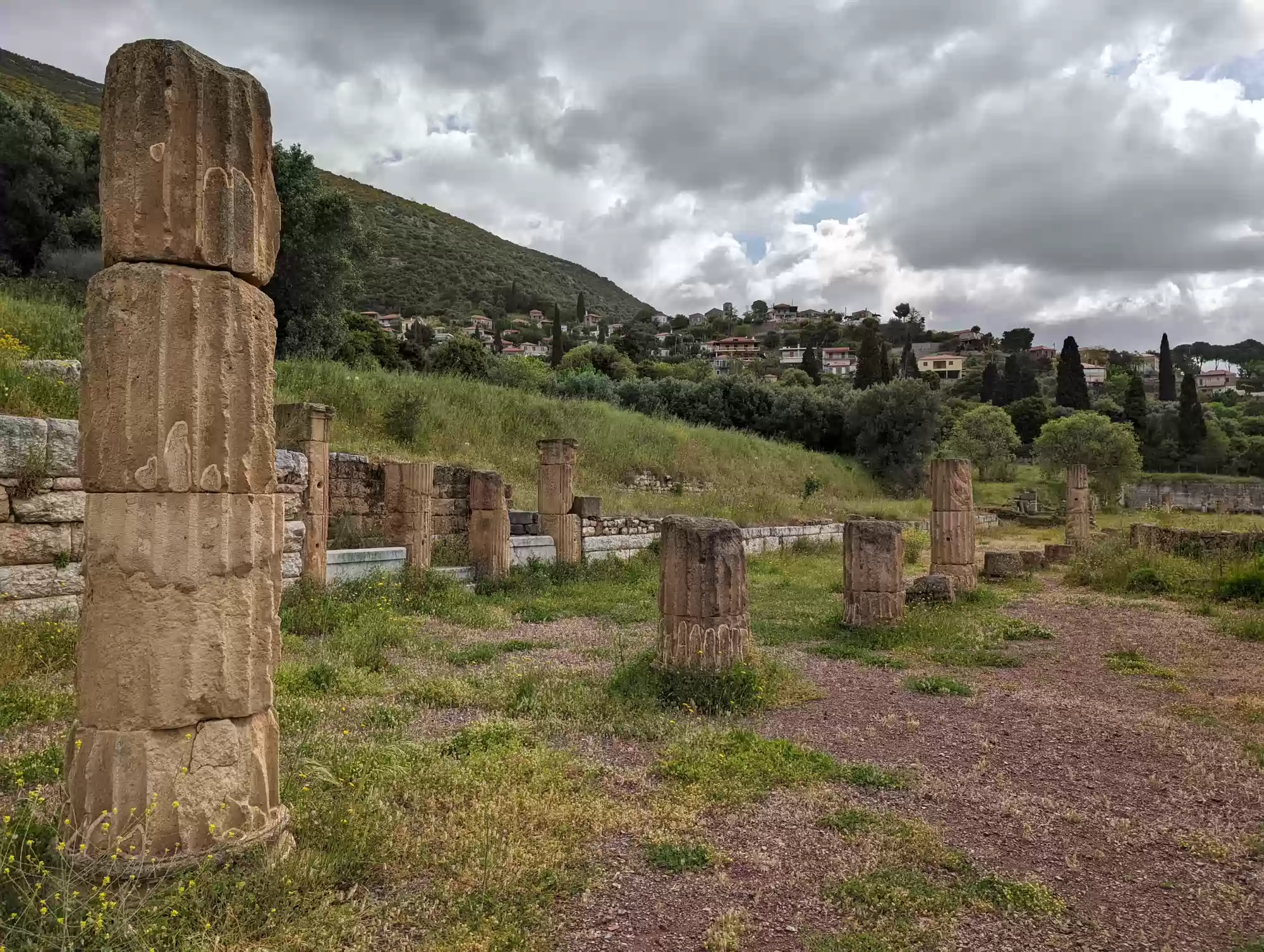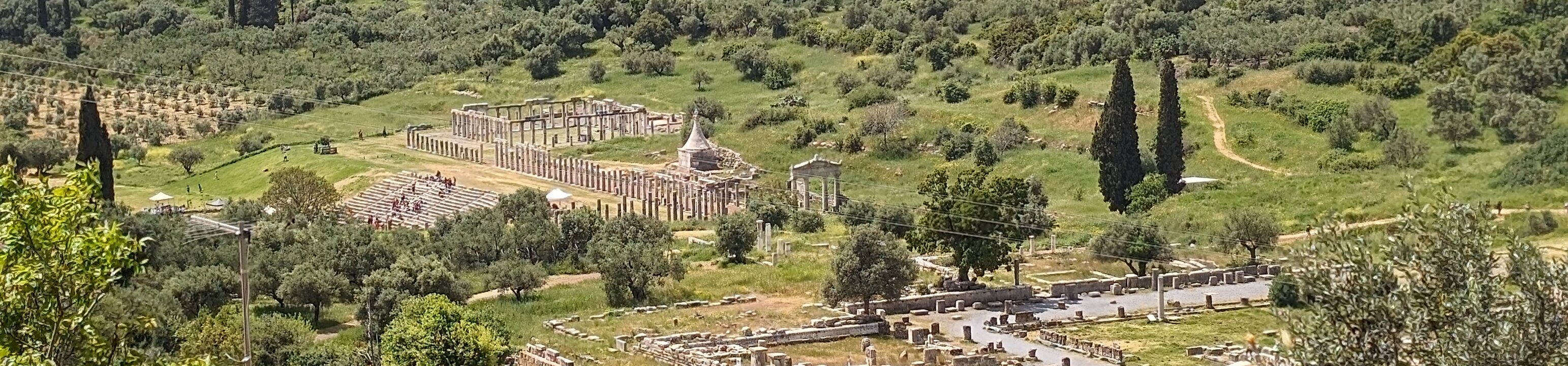Sanctuary of Asclepios. 140 bases for bronze honorary statues of eminent citizens. The courtyard is surrounded by 4 double stoas. There are rooms and buildings…