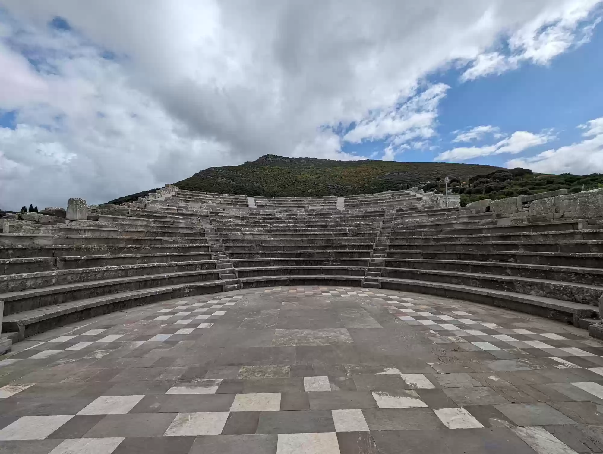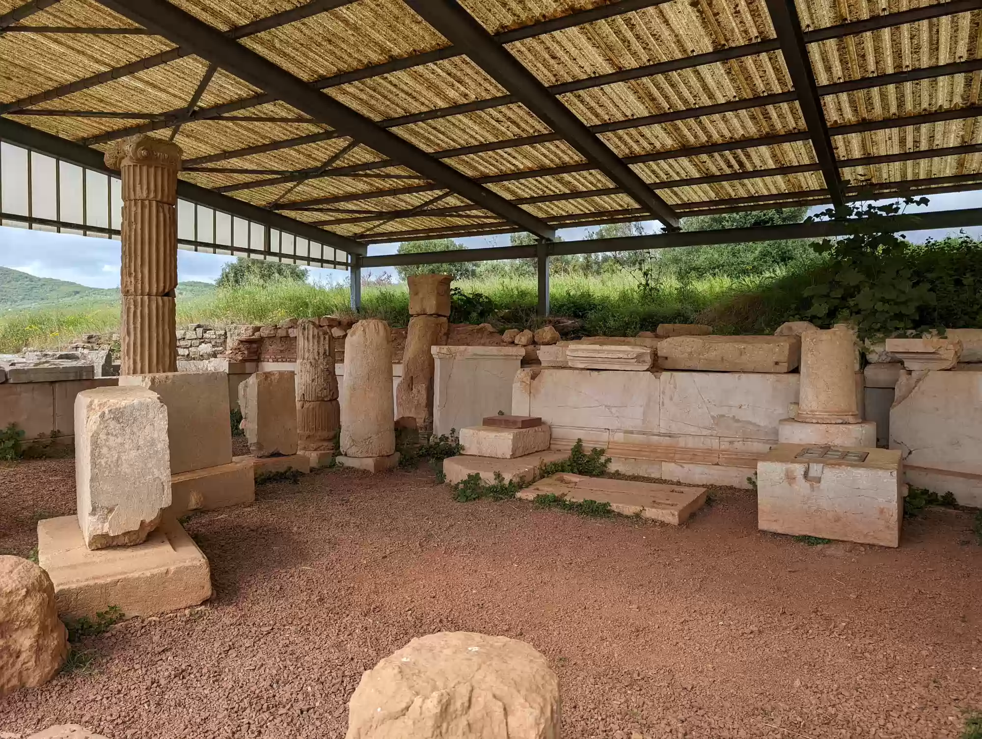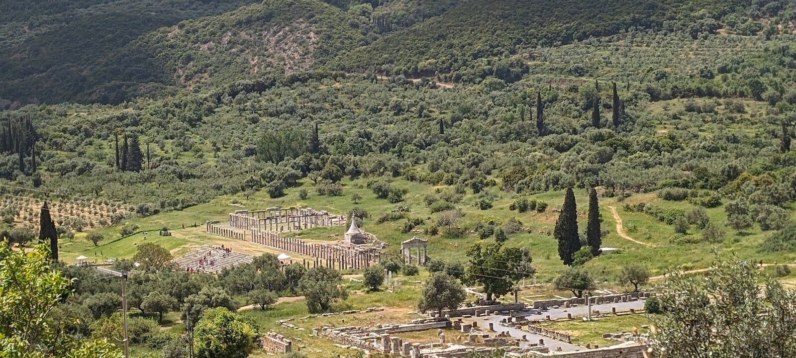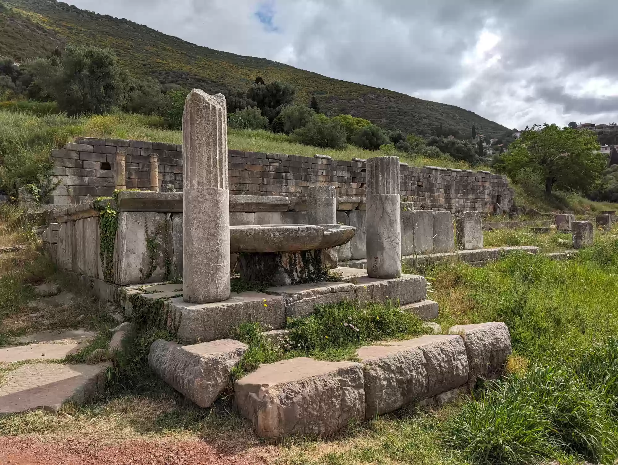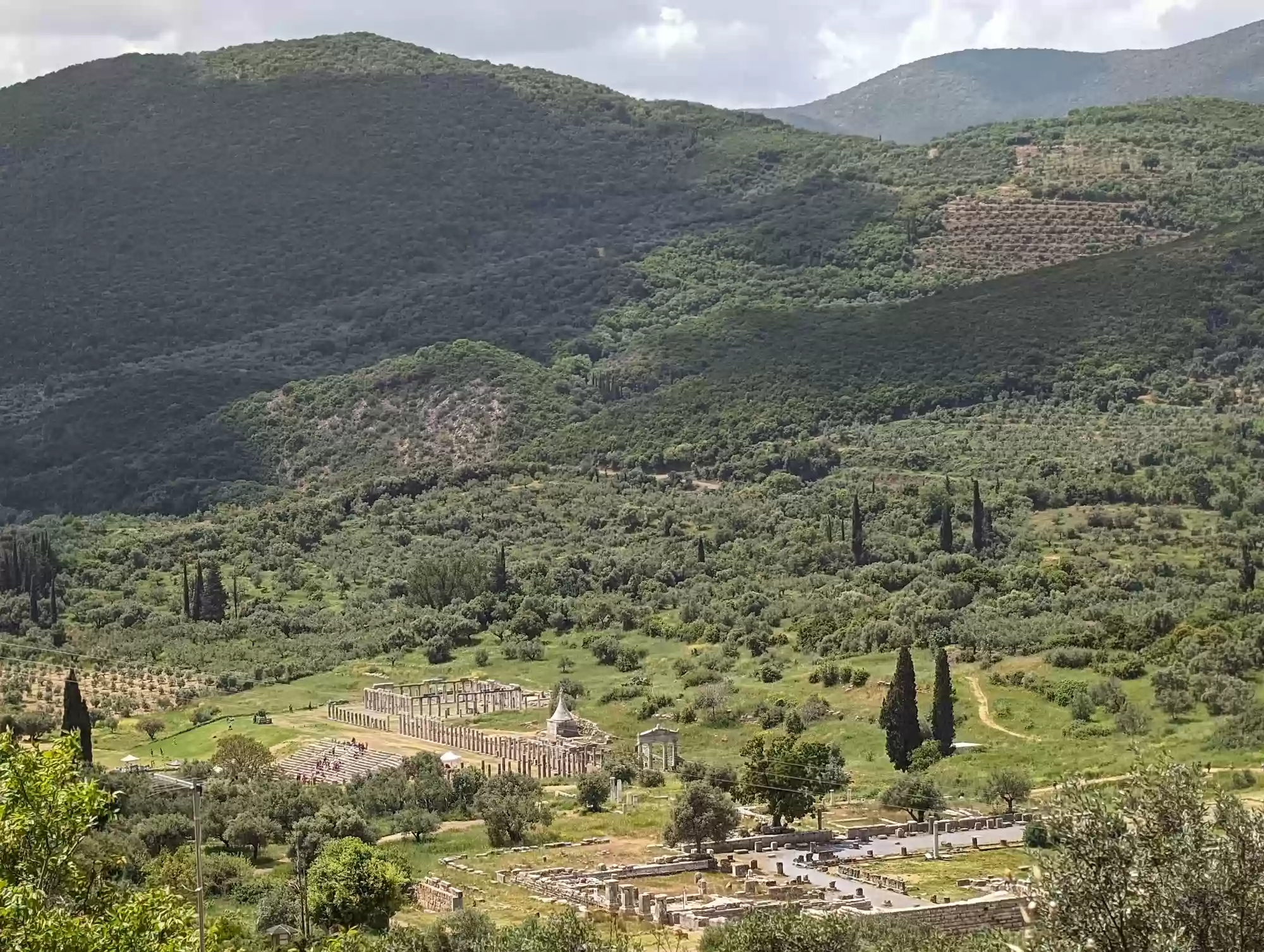 Sanctuary of Asclepios. 140 bases for bronze honorary statues of eminent citizens. The courtyard is surrounded by 4 double stoas. There are rooms and buildings…