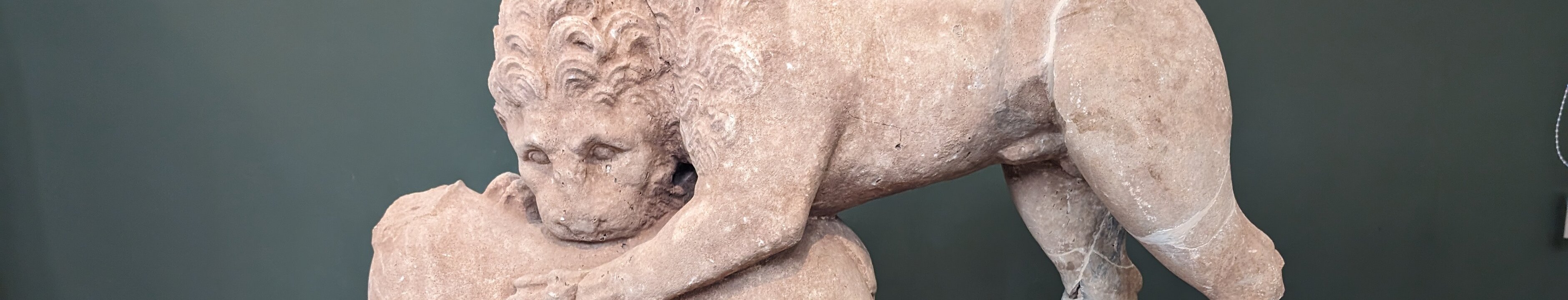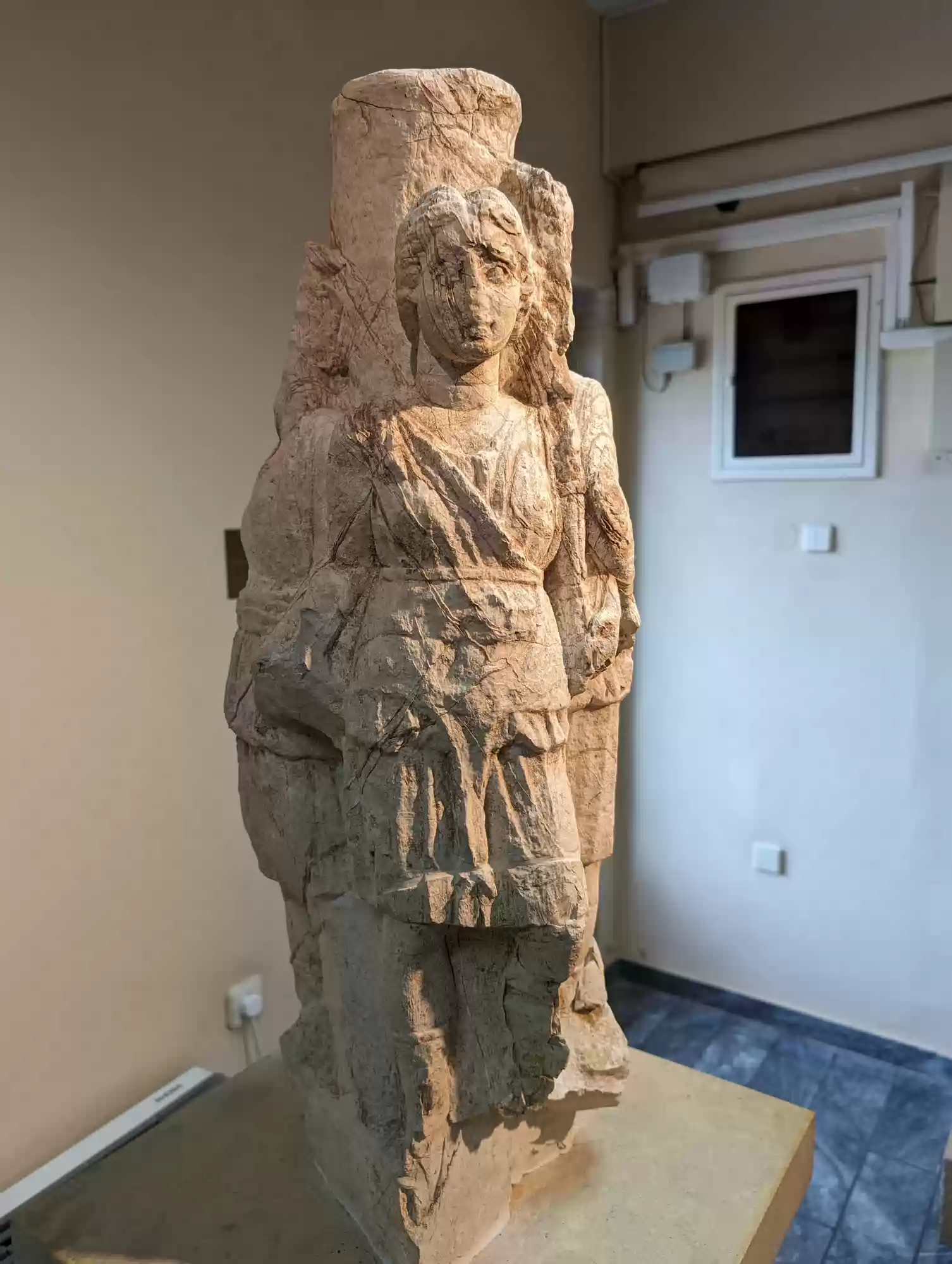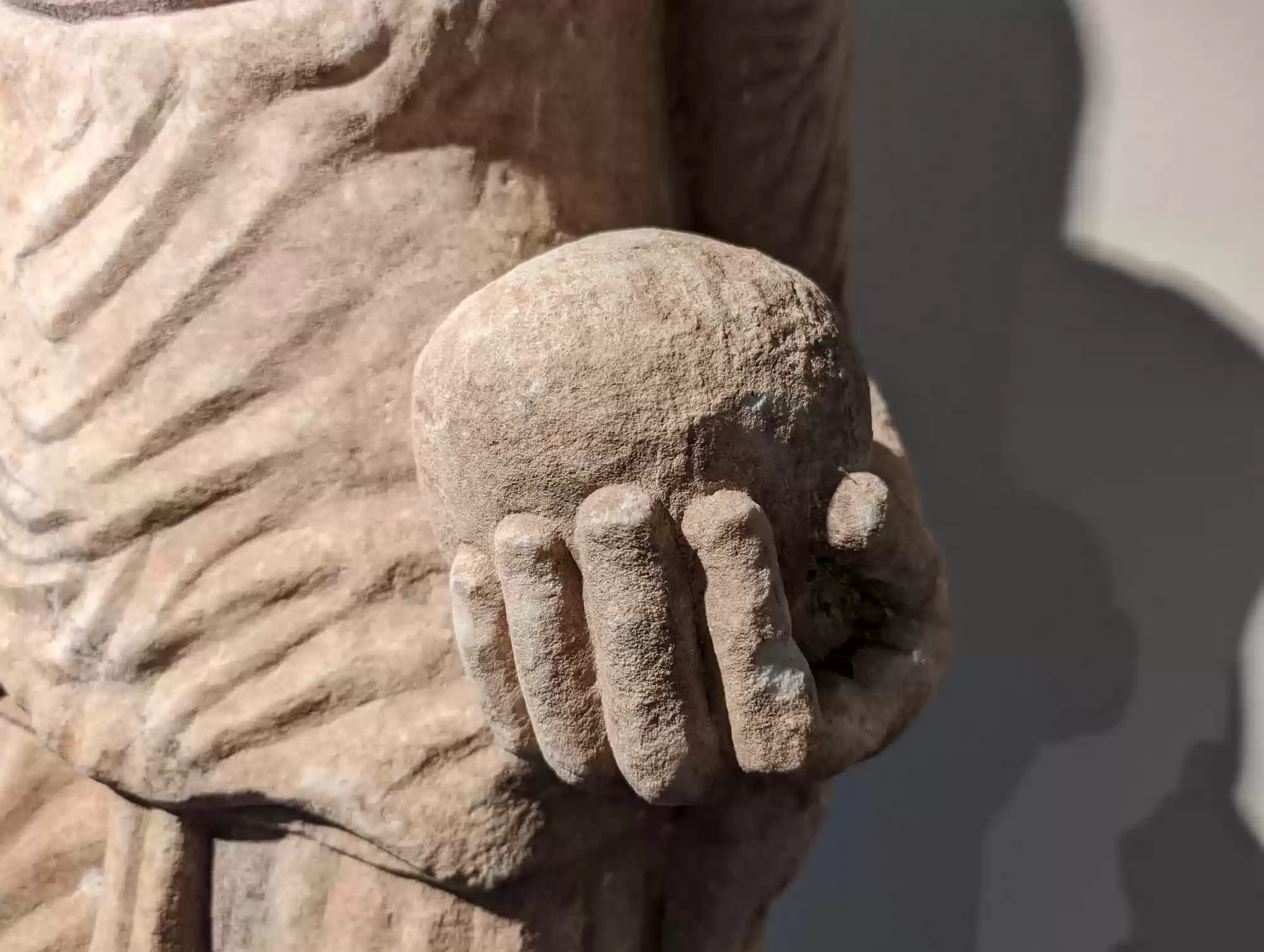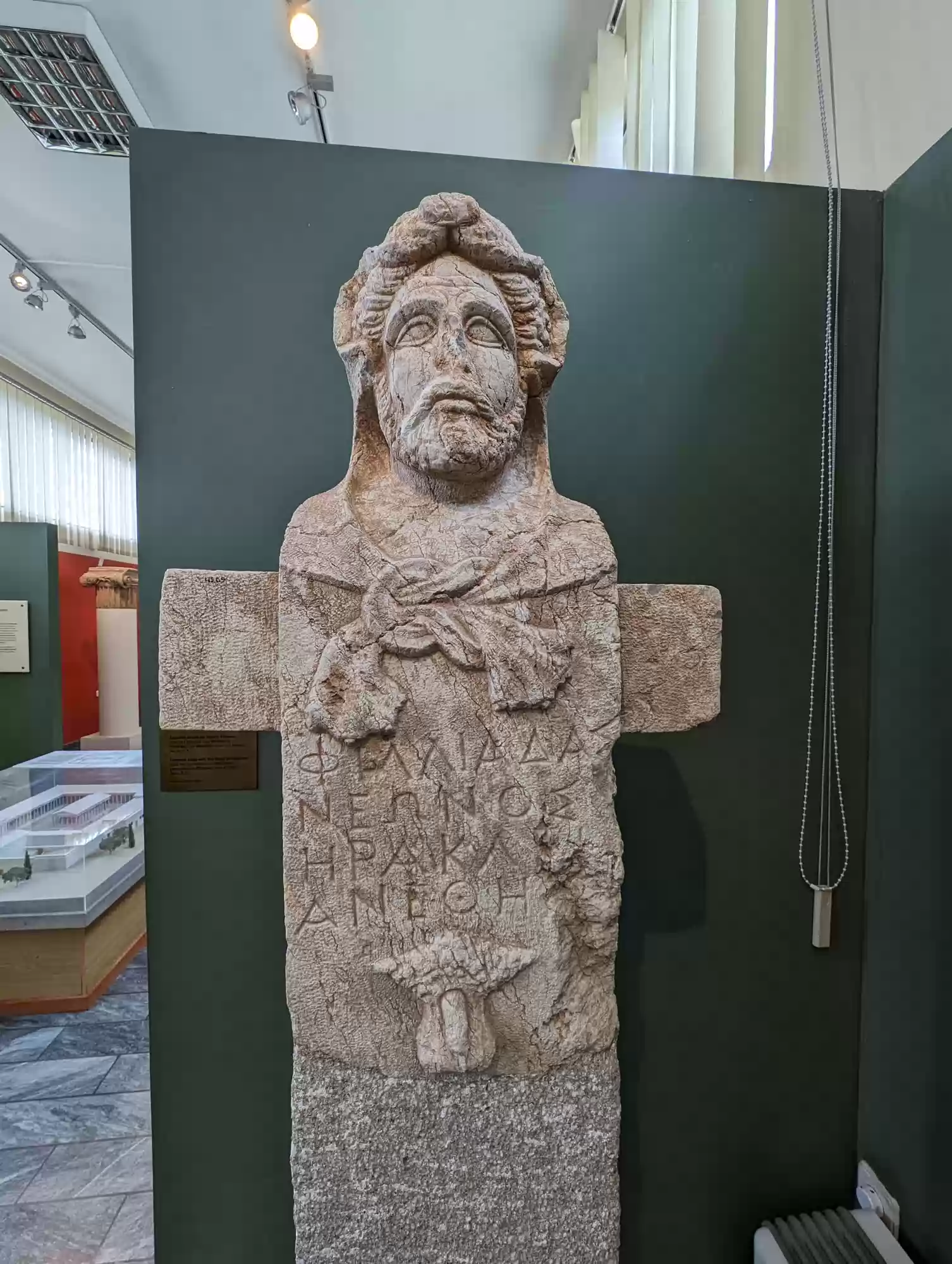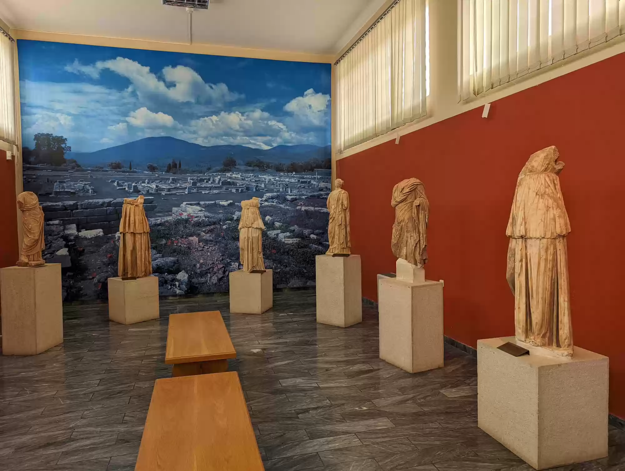 Statue of a man wearing a mantle from the Gymnasium of Messene. The papyrus roll at his left foot indicates he was an intellectual, 1st century CE.