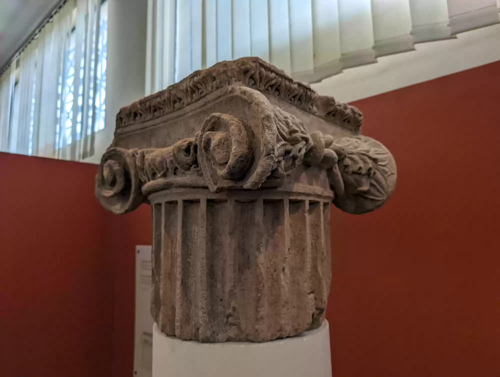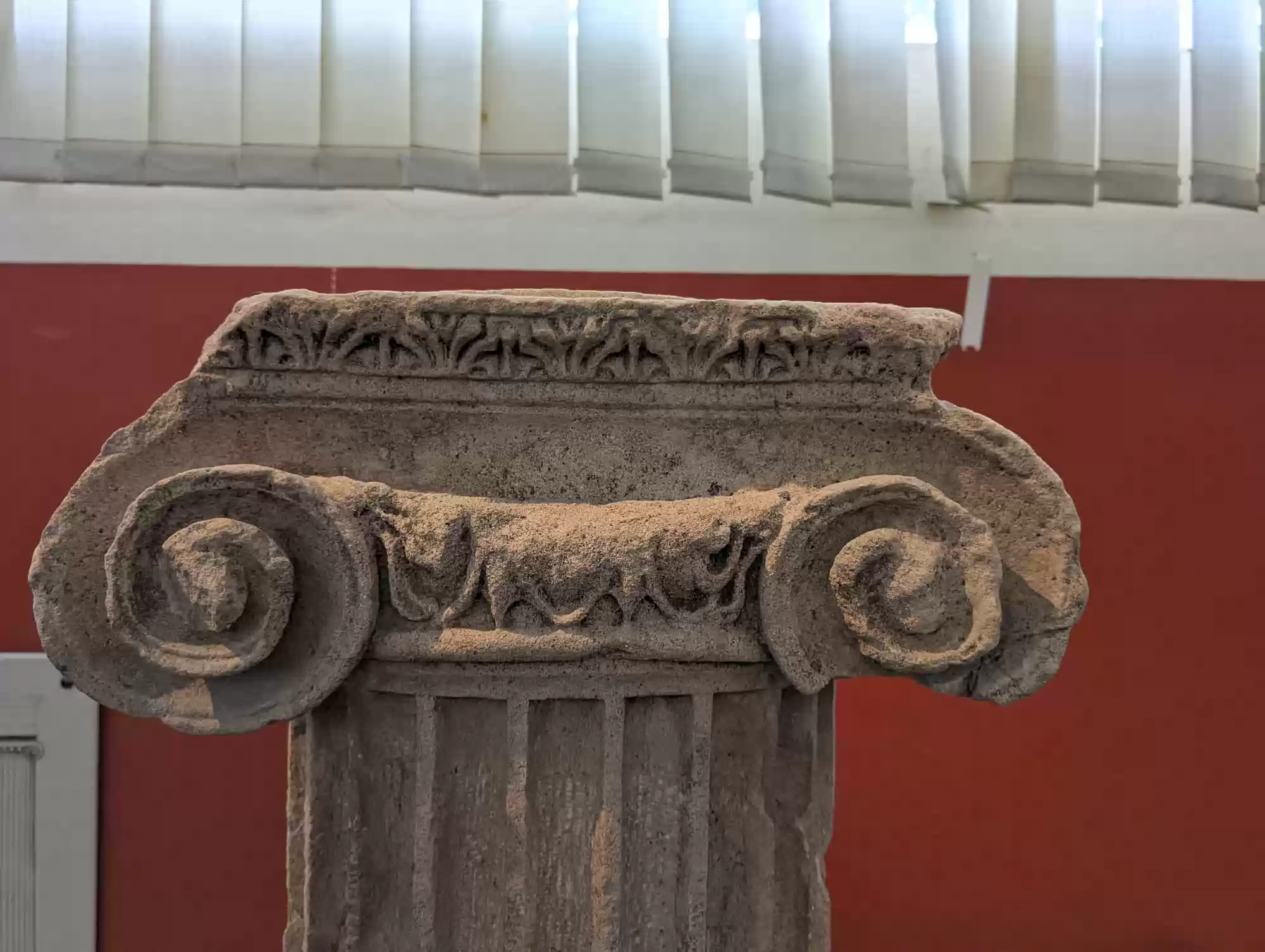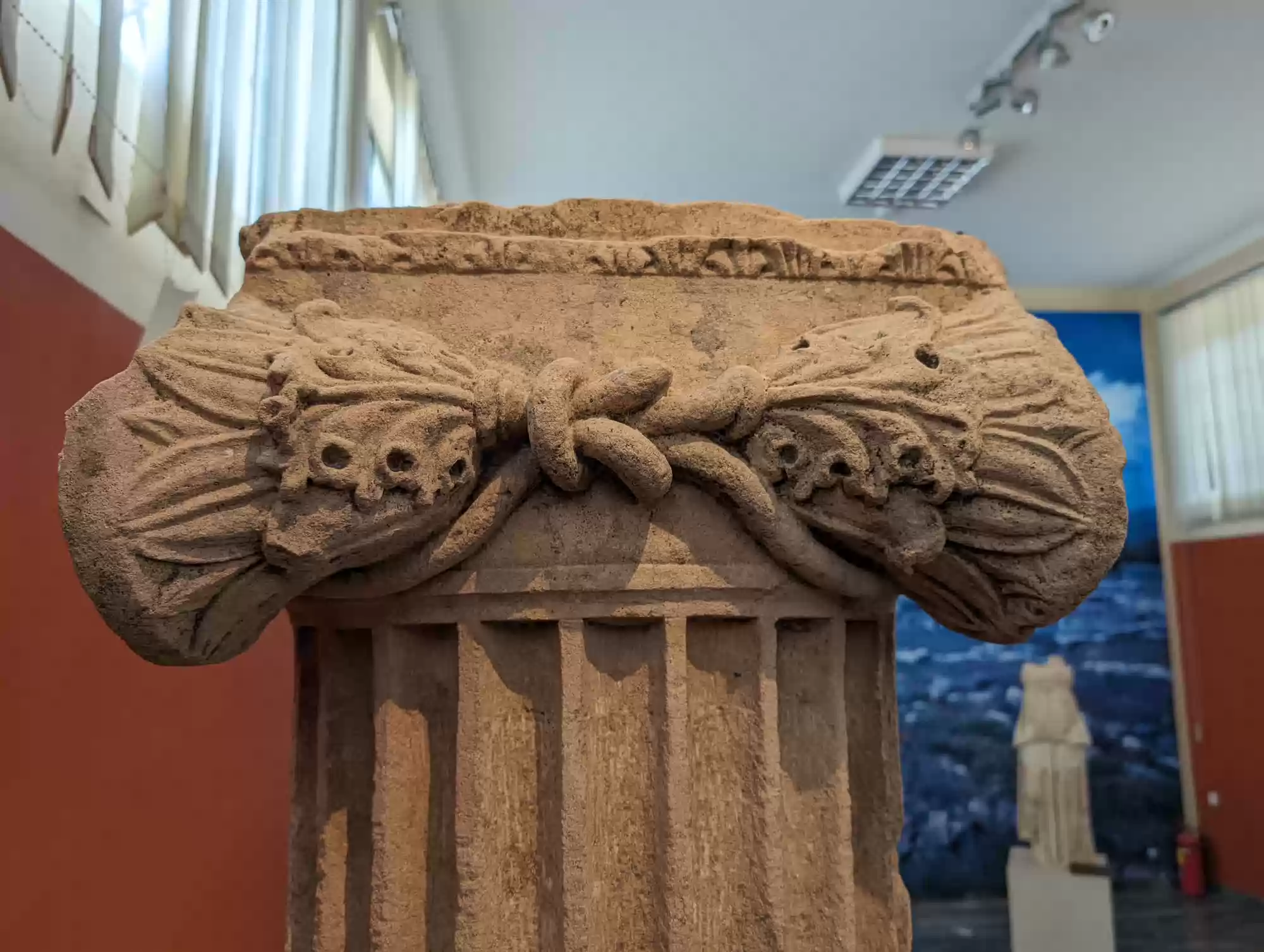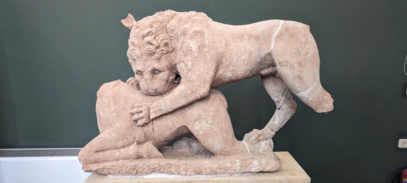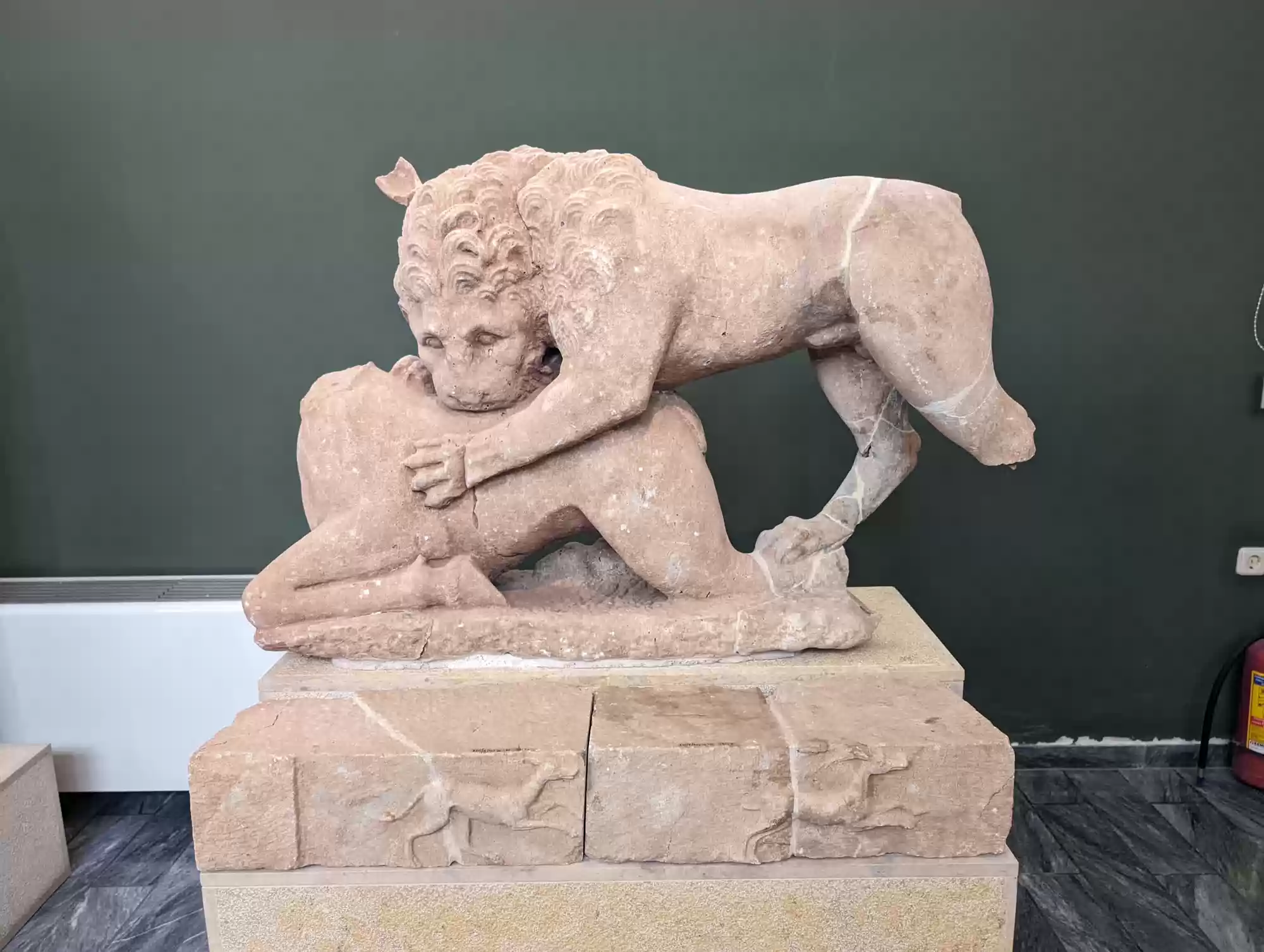 Statue of a man wearing a mantle from the Gymnasium of Messene. The papyrus roll at his left foot indicates he was an intellectual, 1st century CE.