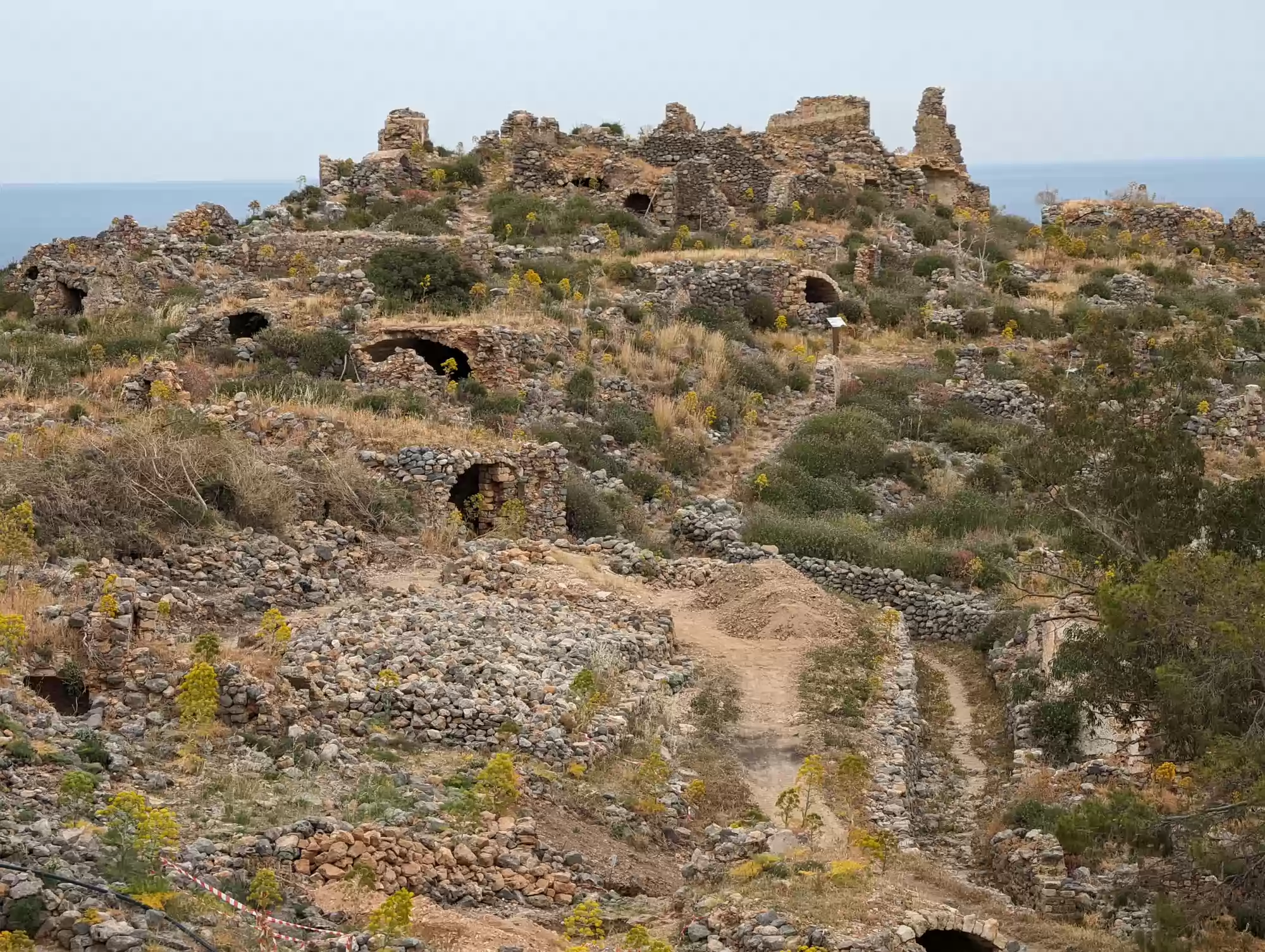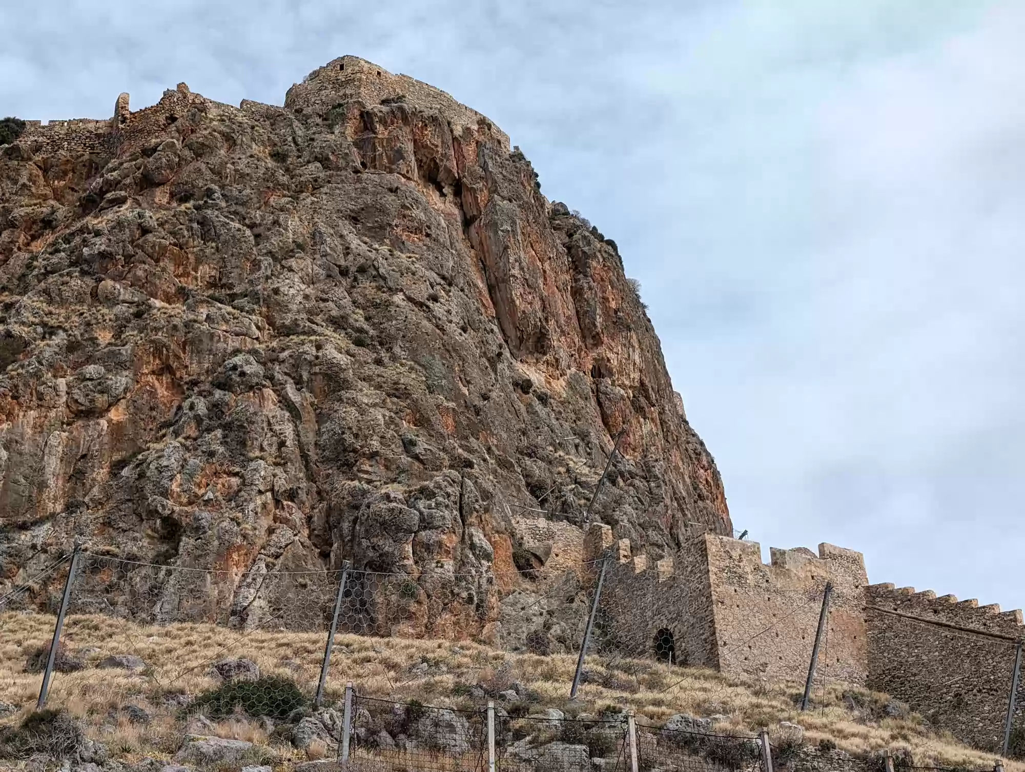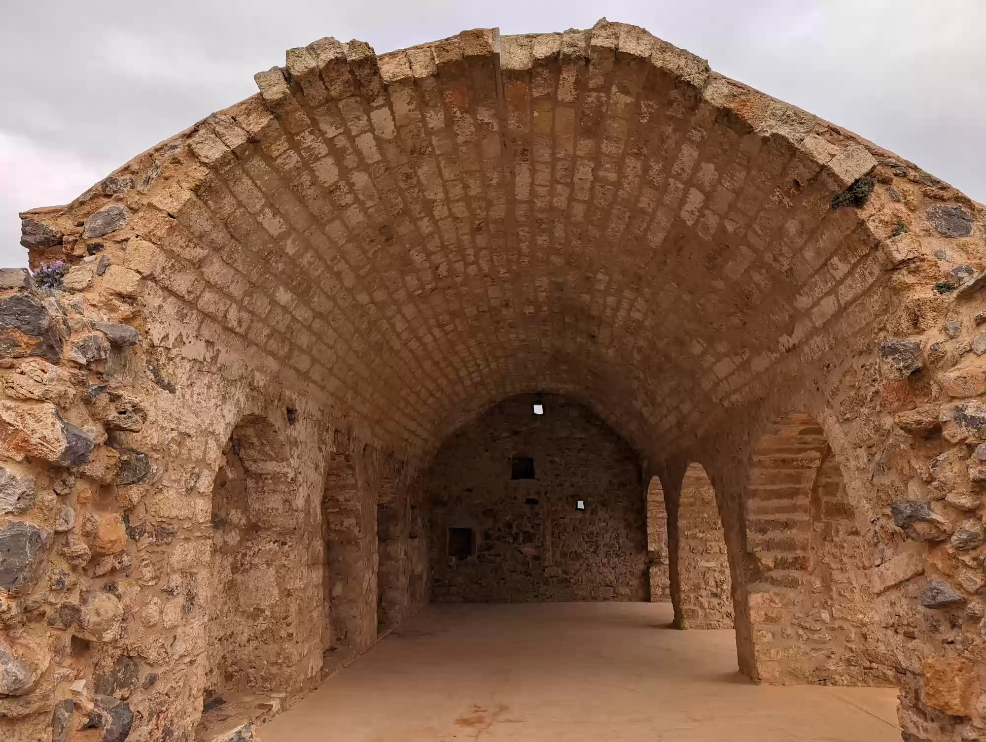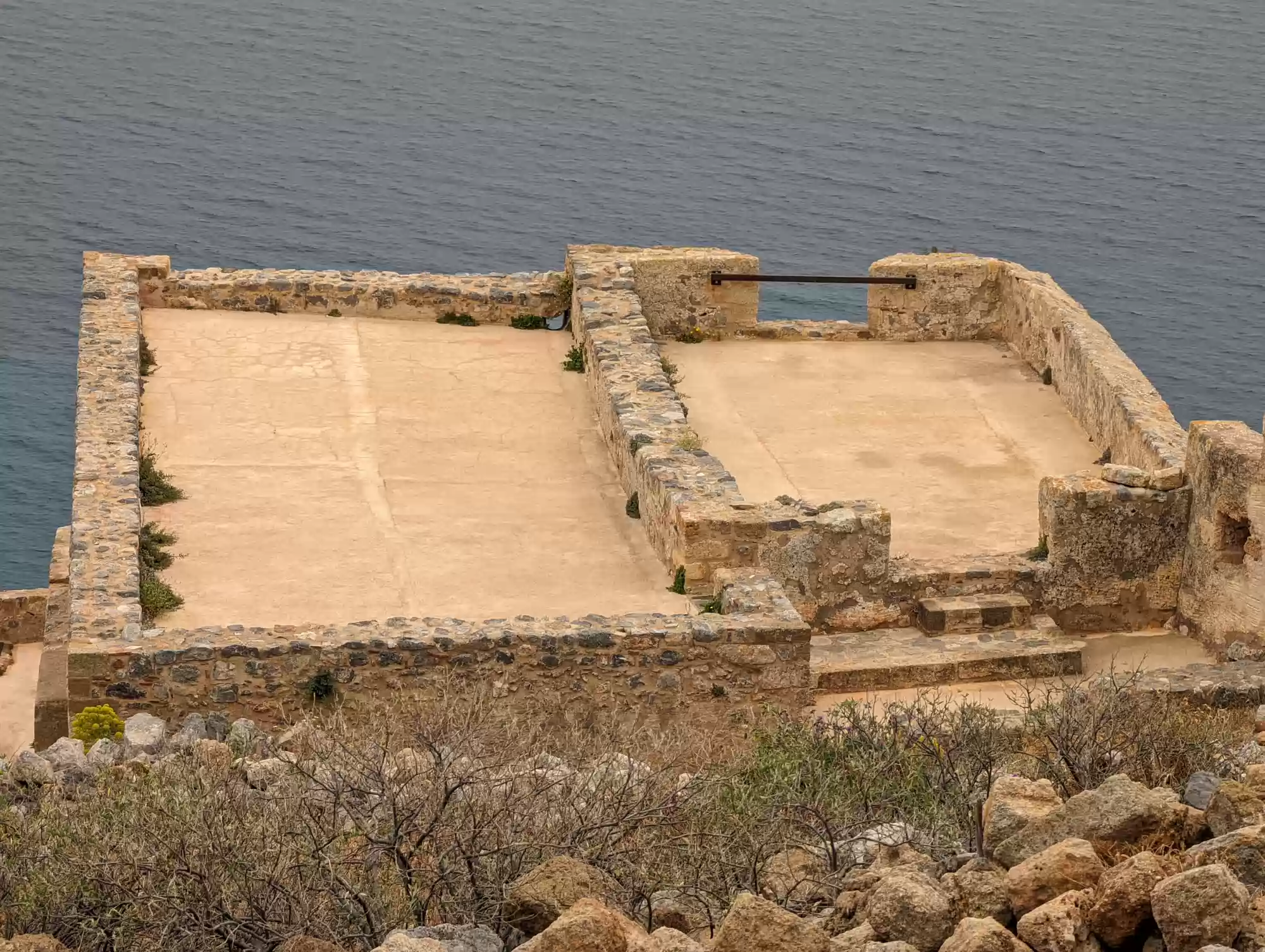 Late byzantine church. A second aisle was added ca. 1700 during the second Venetian rule. Gate complex.