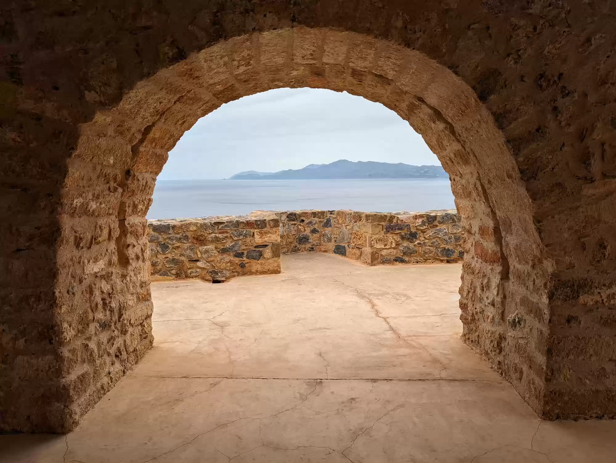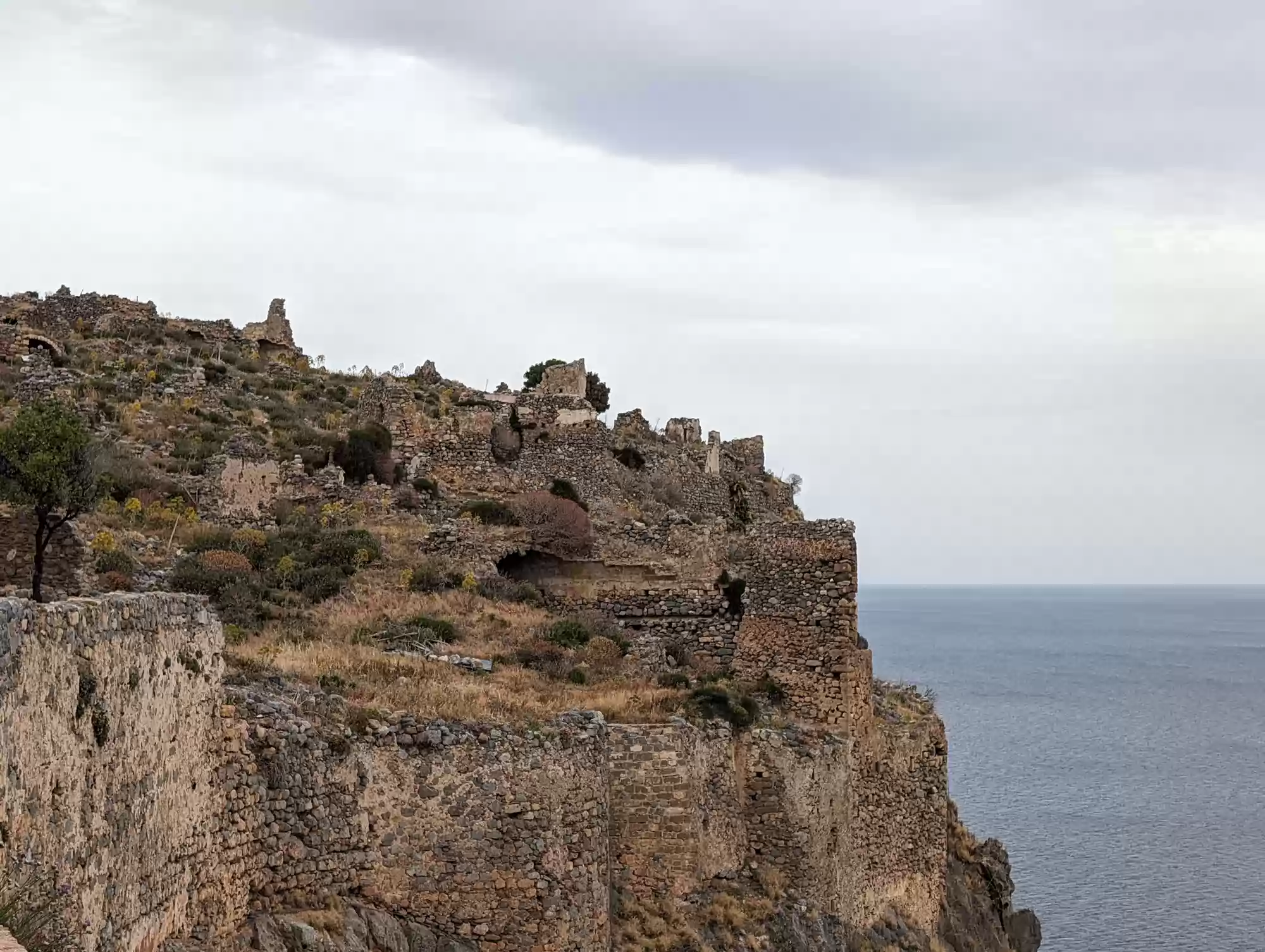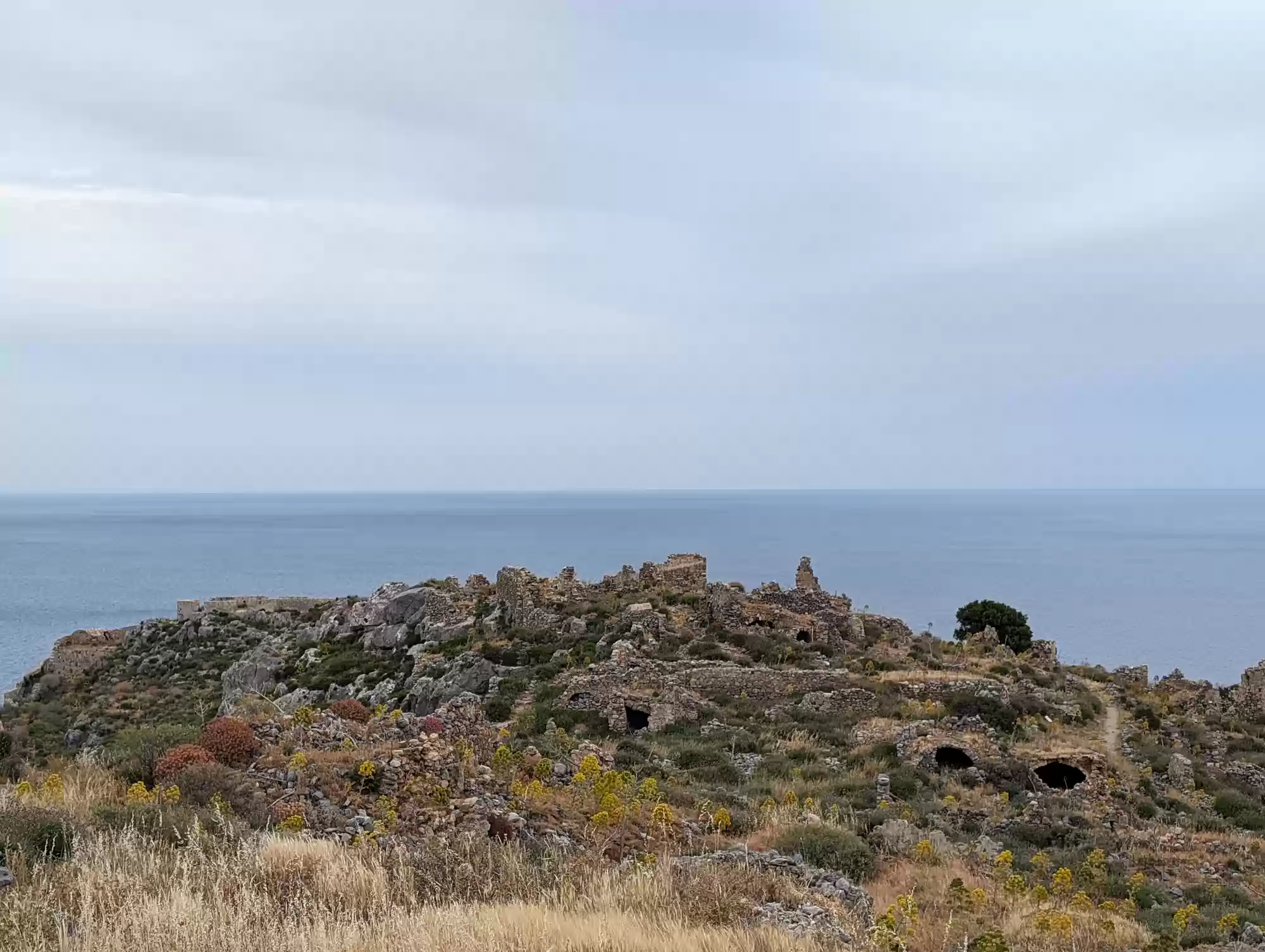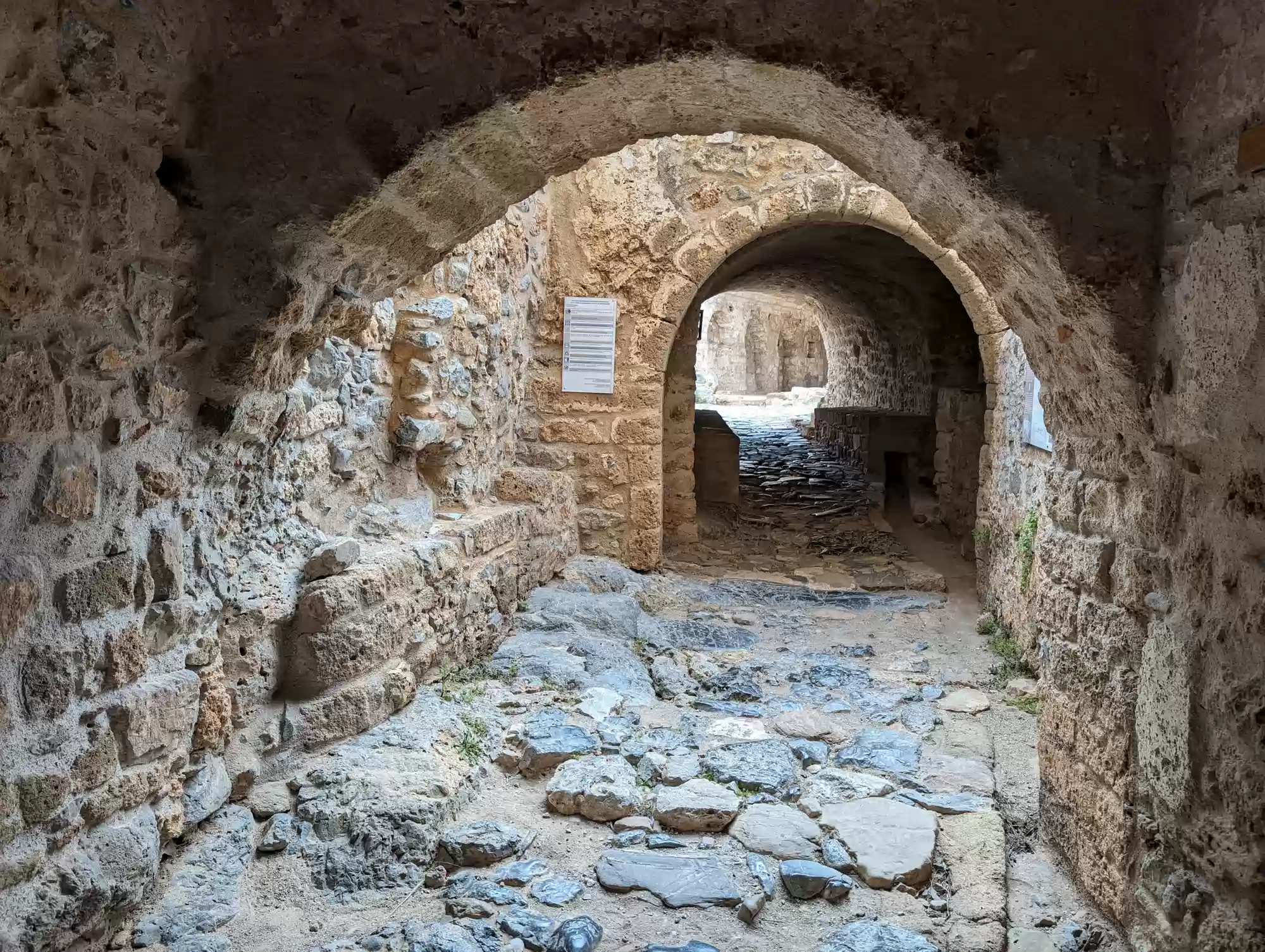Late byzantine church. A second aisle was added ca. 1700 during the second Venetian rule. Gate complex.