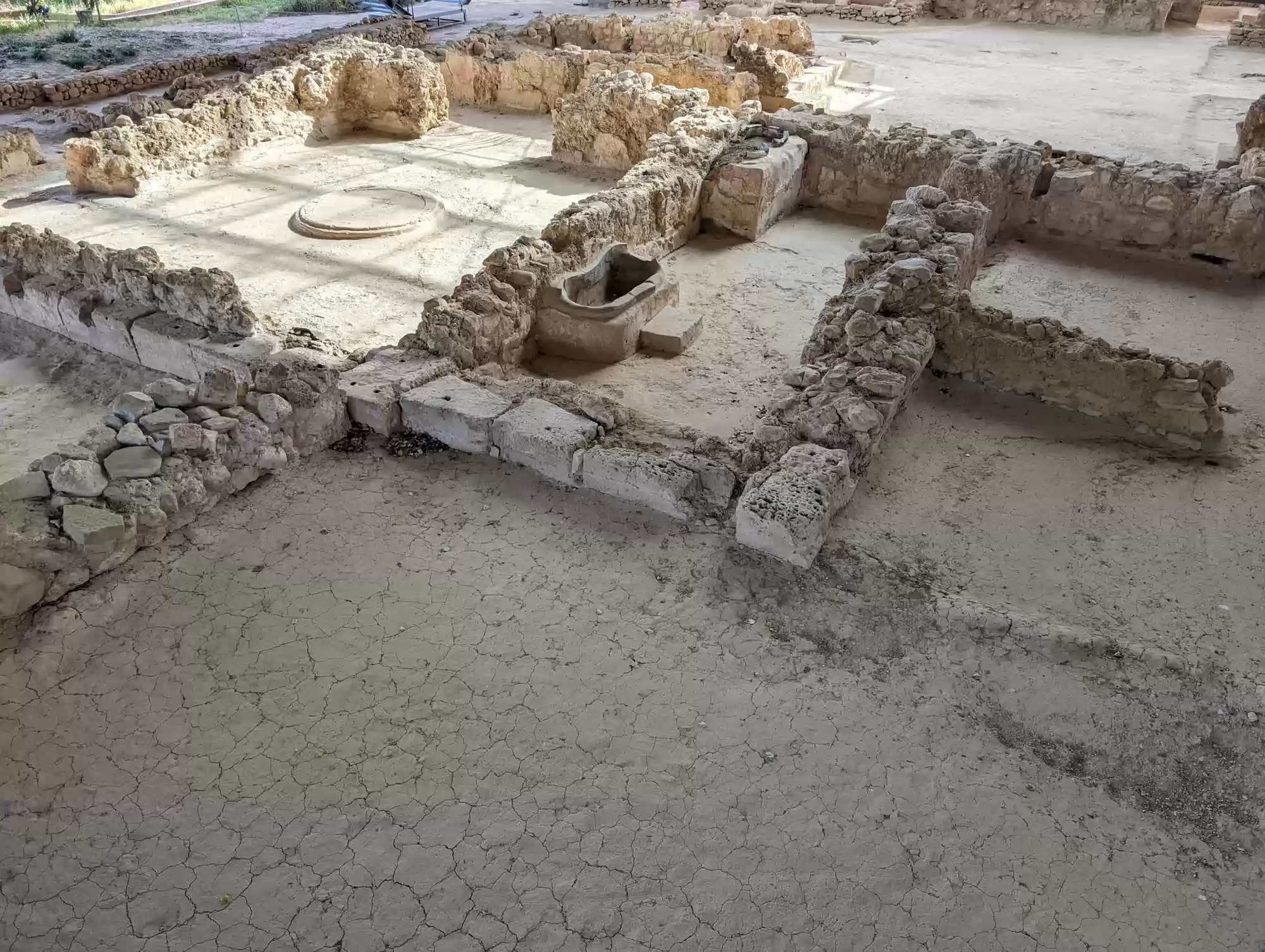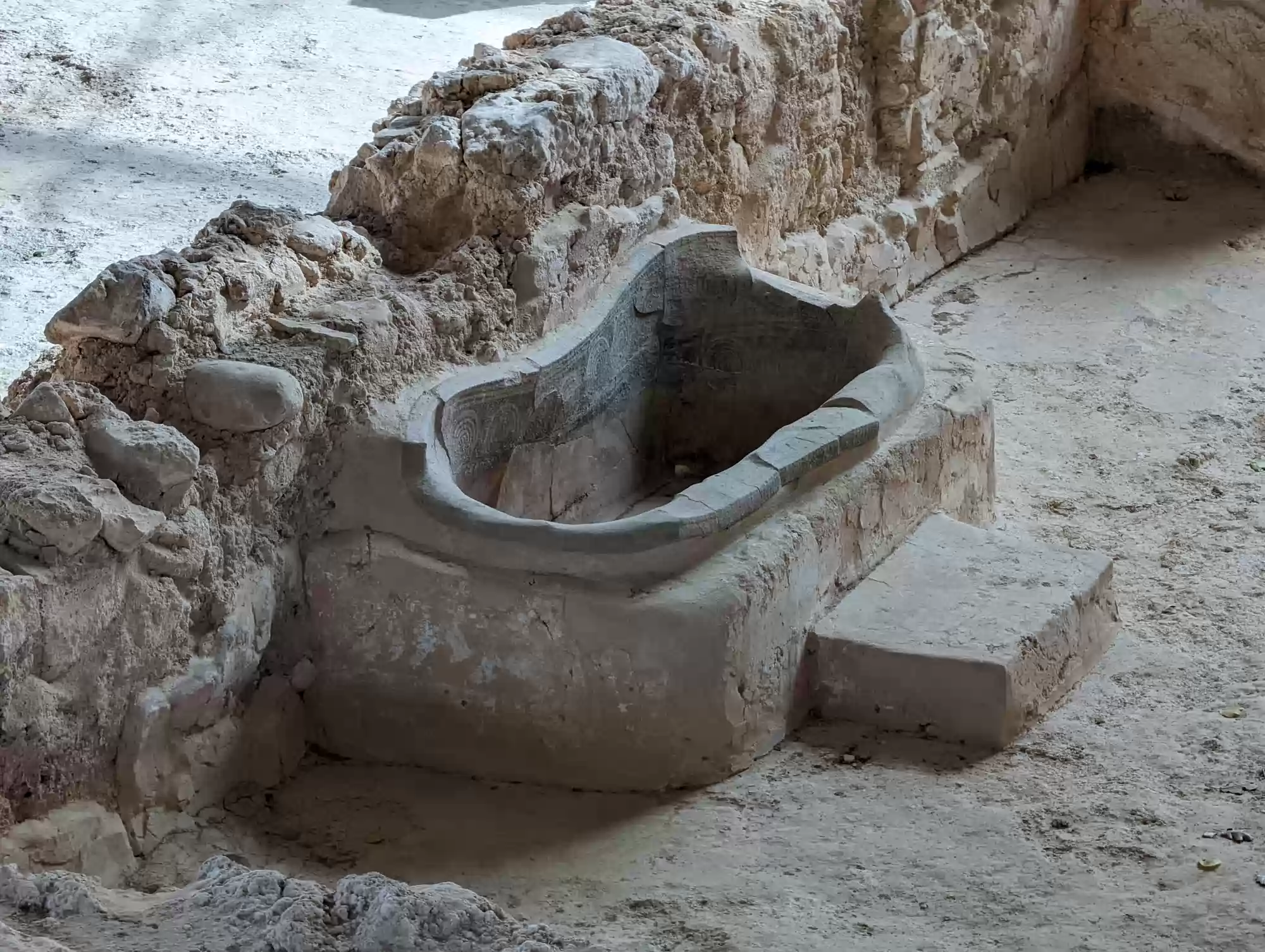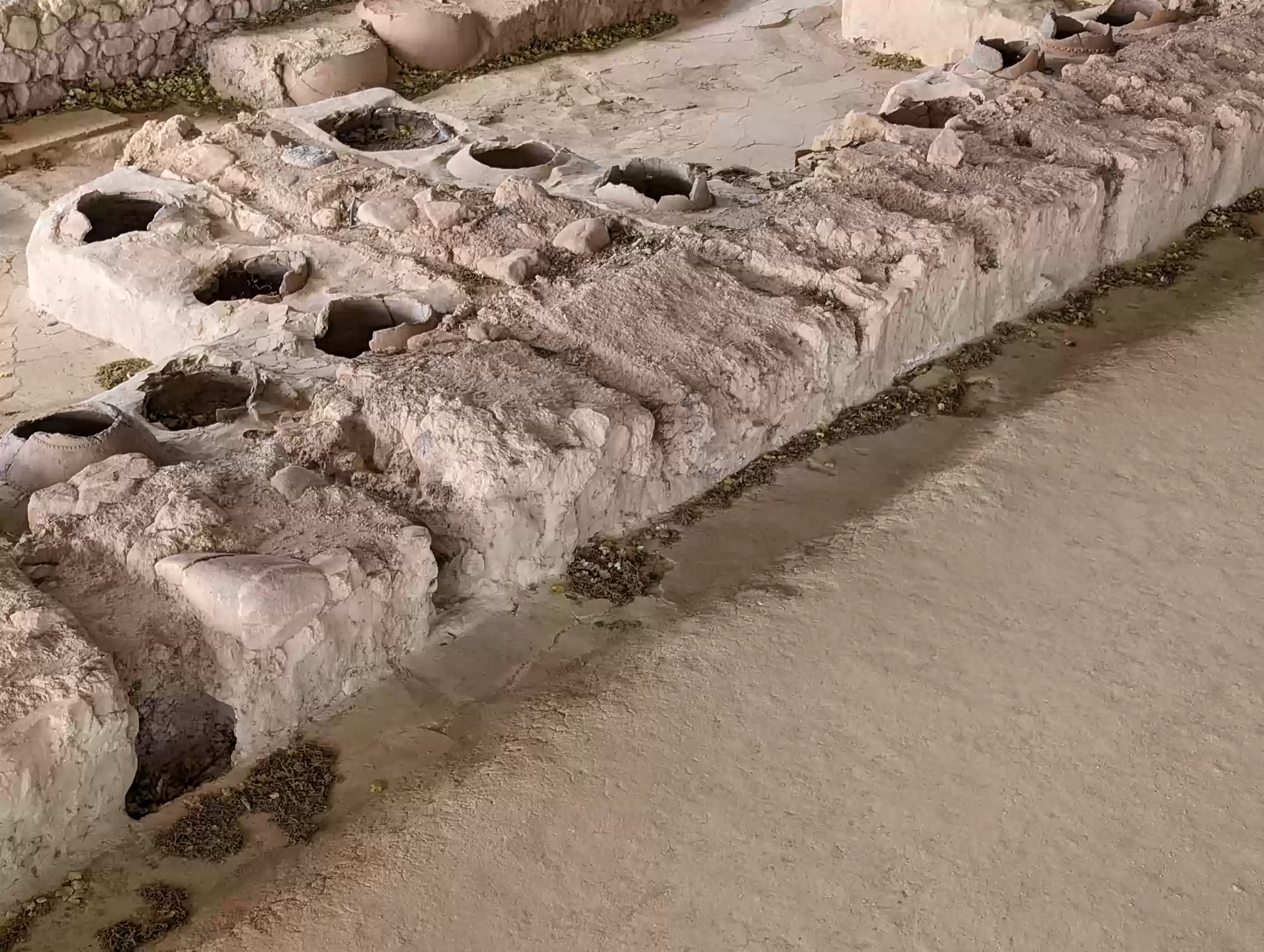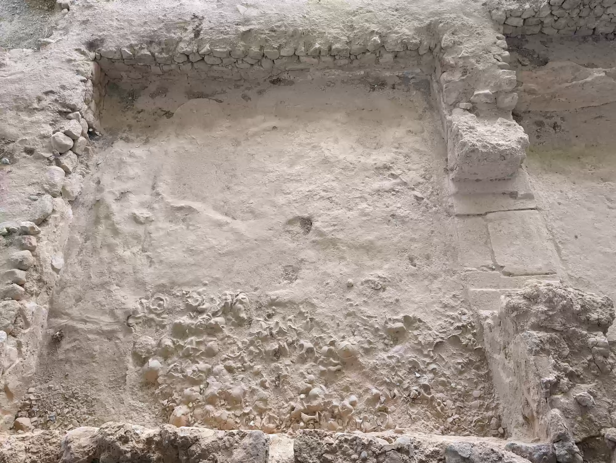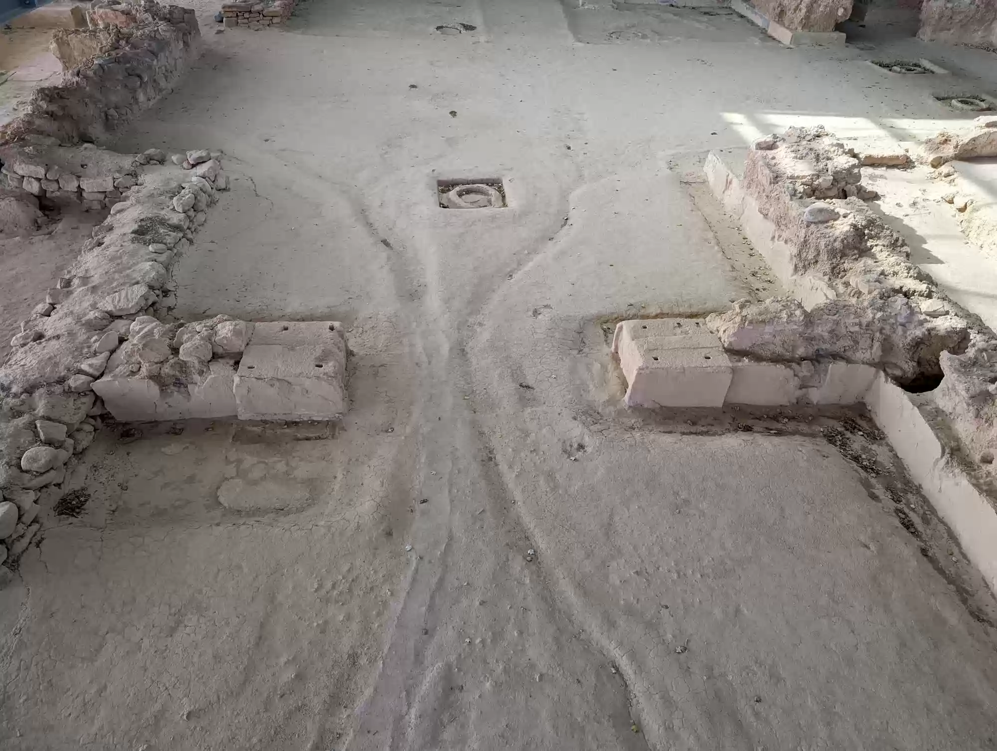 Inner courtyard. Traces of cups preserved during the fire that destroyed the palace are still visible.