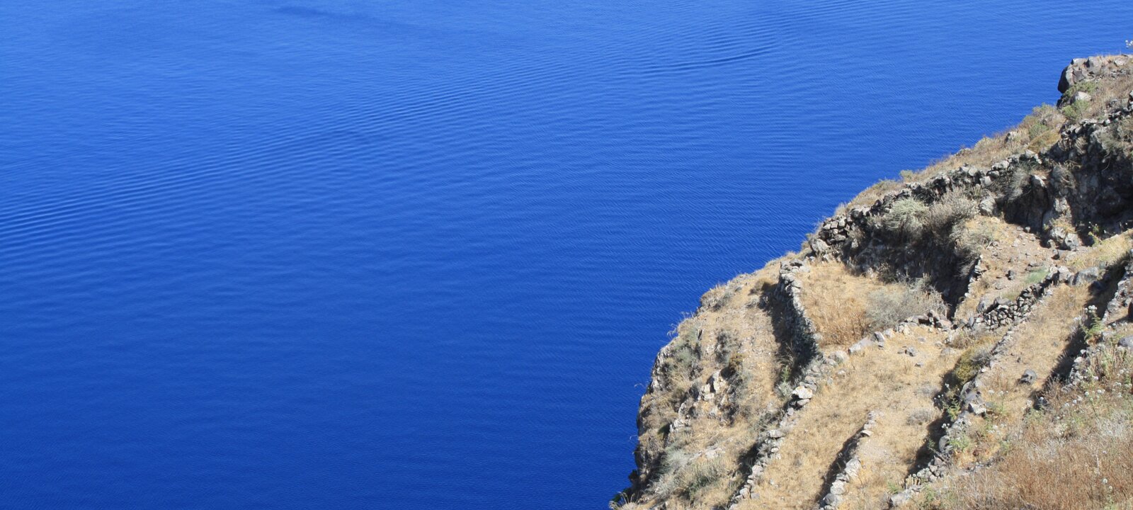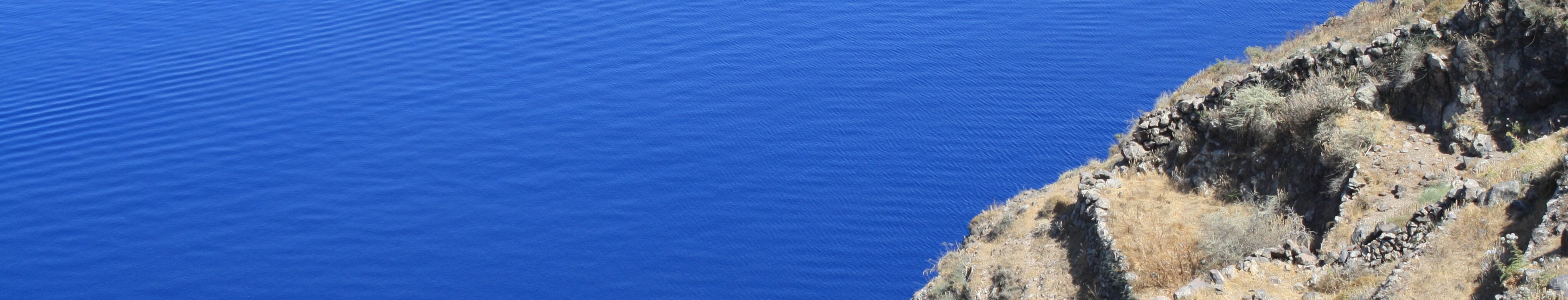 The island of Thirasia is part of the rim of the former volcano that collapsed during an eruption and formed the caldera. Nea Kamini in the middle of the caldera, and Santorini in the back. Road from the harbor to the village on top of Thirasia. Road from the harbor to the village on top of Thirasia. Village on top of Thirasia. Pyrgos Labels