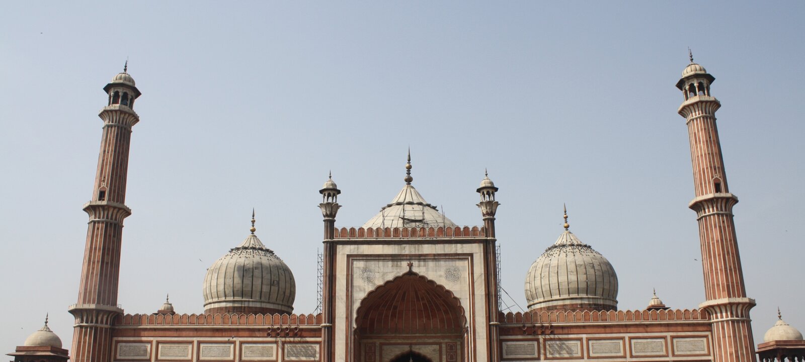 Jama Masjid, built in 1650, is the largest mosque in India, with a capacity of 25000 people. The 3 domes are made of white and black marble. View of the the Red Fort from Jama Masjid. The main courtyard. Humayun's tombLotus Temple Labels
