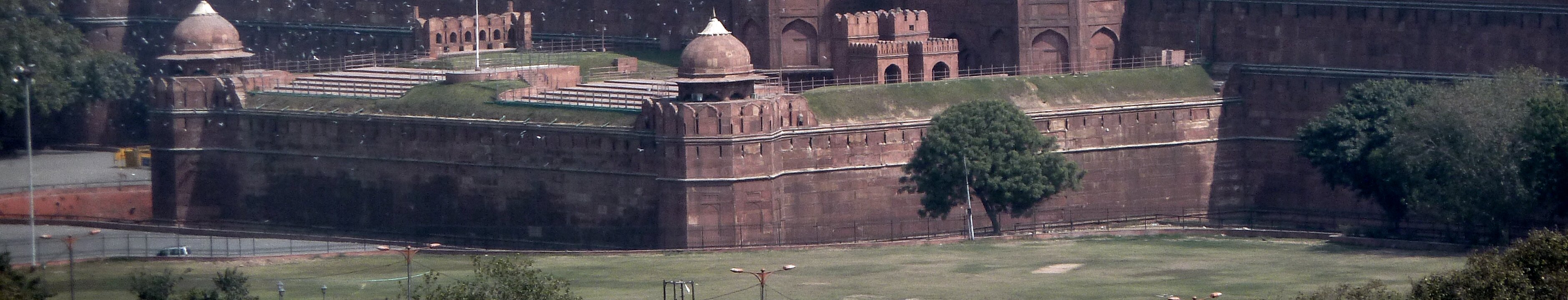 Red fort in New Delhi. It was built by the Moghul emperor Shah jahan (also of Taj Mahal fame) in 1639. Walls are 2.5km long and 16-33m high. Qutb Minar Labels
