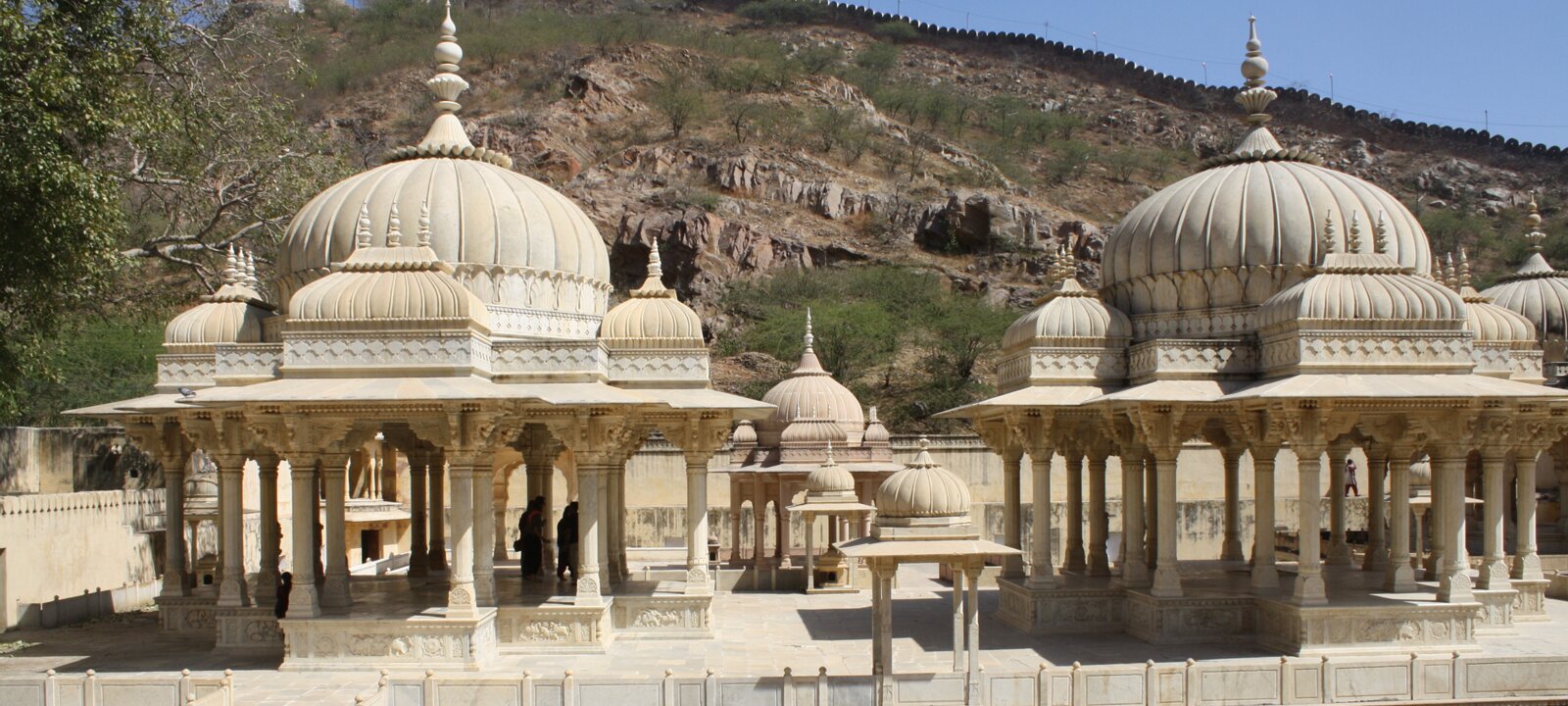 Cenotaphs of the maharajas of Jaipur. Cenotaph of Sawai Jai Singh II, founder of Jaipur. Galta templeJaigarh fort Labels