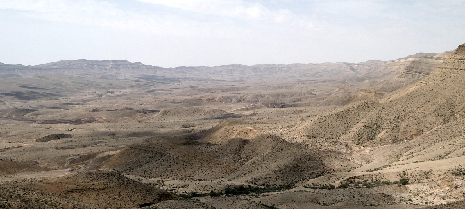 Makhtesh Gadol, one of the five makhtesh (erosion craters) located in the Negev desert, 5x10 km. Labels
