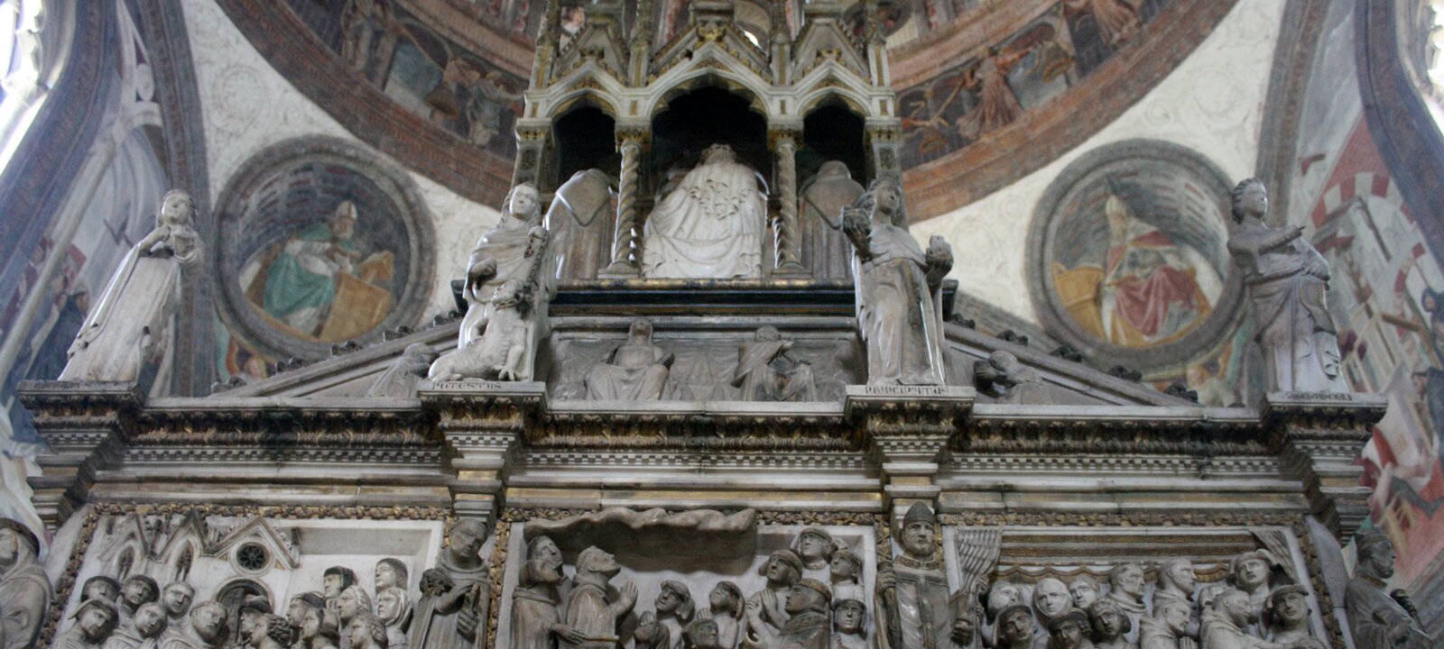The circular frescoes are paintings of the Doctors of the church (Gregory the Great, Jerome, Ambrose, Augustine).