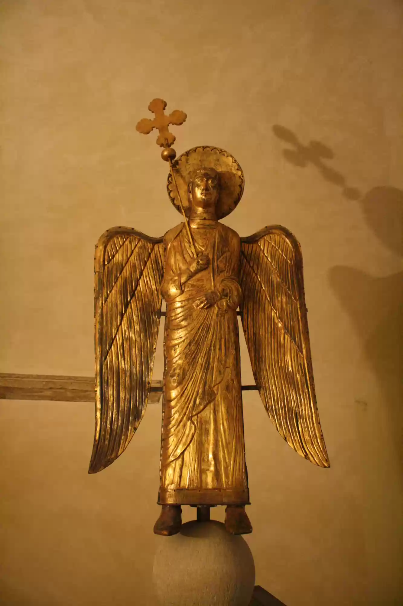 Archangels Michael and Gabriel. Originally placed in the niches above the North portal.