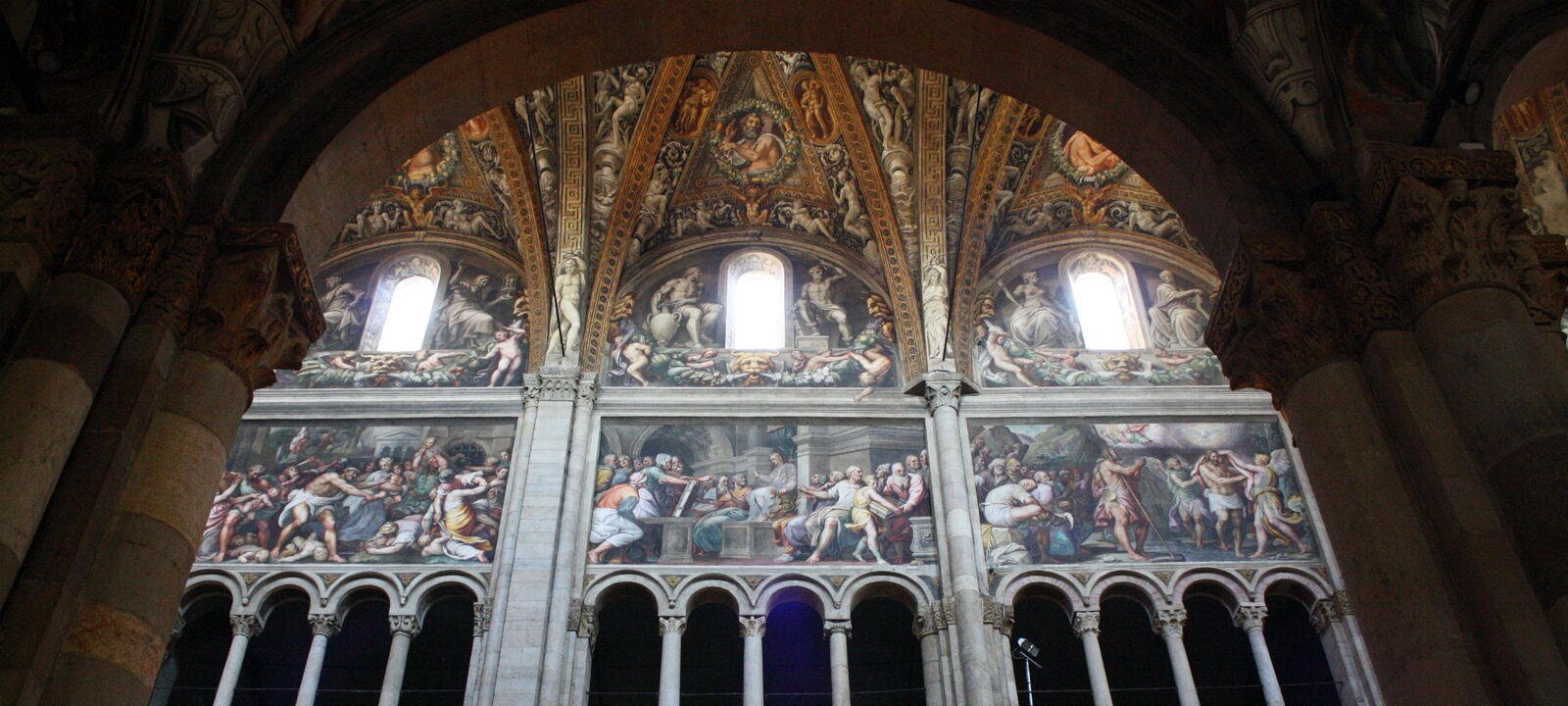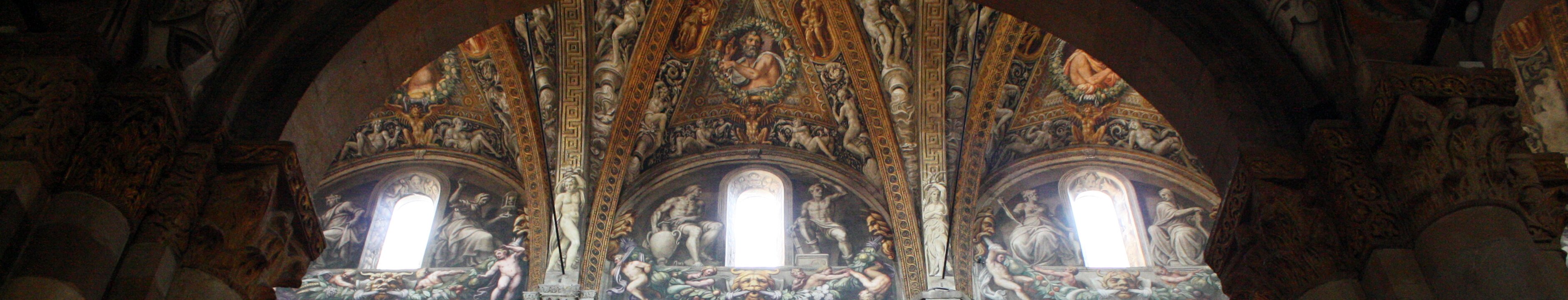 Between 1567 and 1573, Lattanzio Gambana painted the episodes of the new testament on the bays of the main nave.