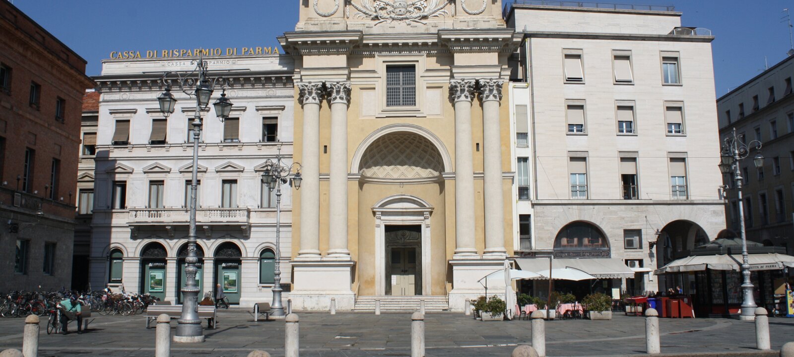 San Pietro, a neoclassic church built between 1707 and 1762. Post officeSanta Maria Della Steccata Labels