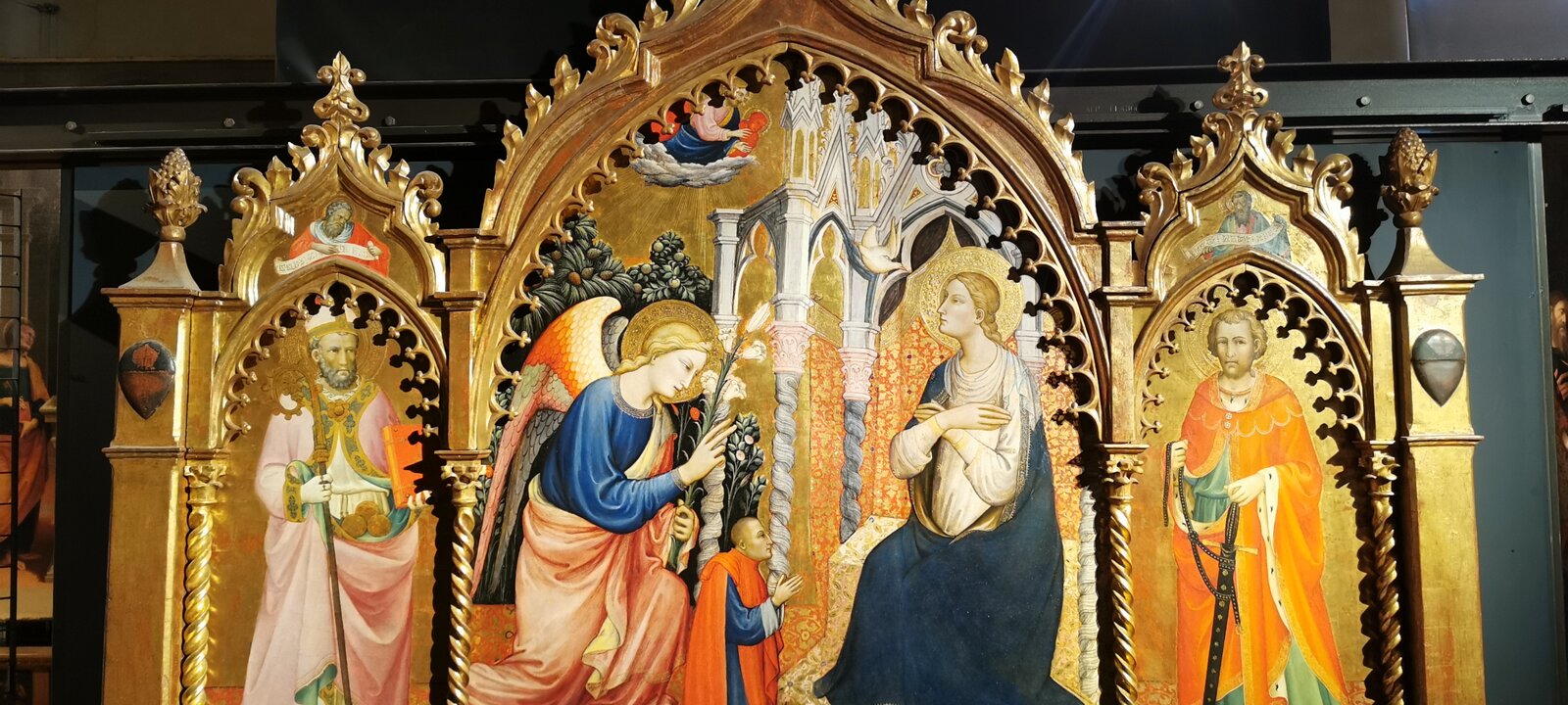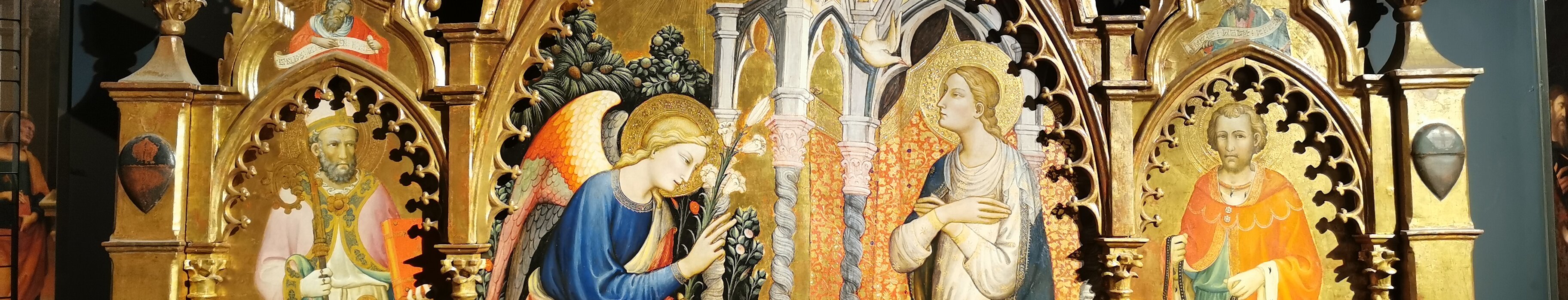 Mariotto di Nardo, Annunciation; Rossello di Jacopo Franchi, San Nicola di Bari and San Giuliano, 1414.