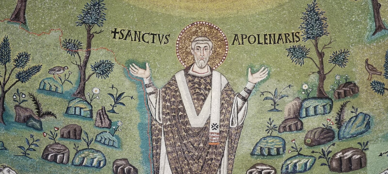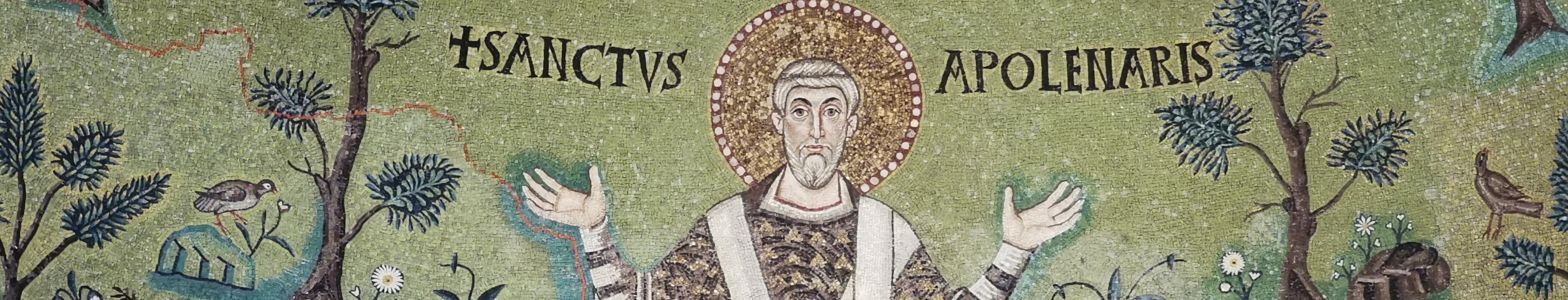 Sant'Apollinare in Classe, erected on the burial site of Saint Apollinaris, consecrated in 549. For the first time, the representation of the Saint substitutes… Sant'ApollinareSan Vitale Labels