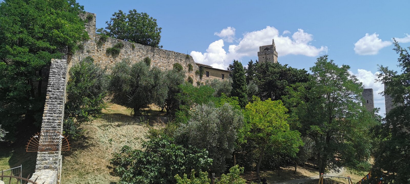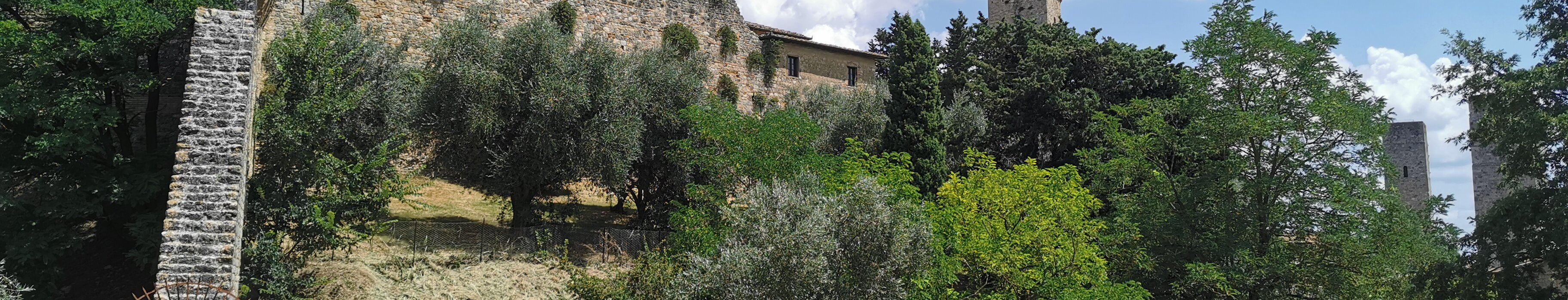 Vernaccia di San Gimignano, a type of grapes used to produce a local wine. Piazza DuomoSan Lorenzo in Ponte Labels
