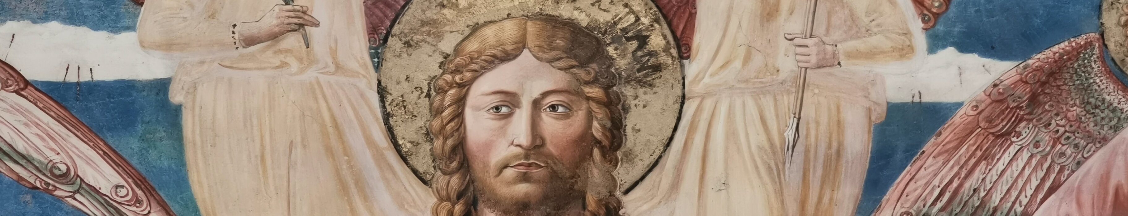 Lippo Memmi, before 1317. The oldest fresco in San Gimignano. Virgin suckling the child between archangel Michael and Saint John the Baptist.
