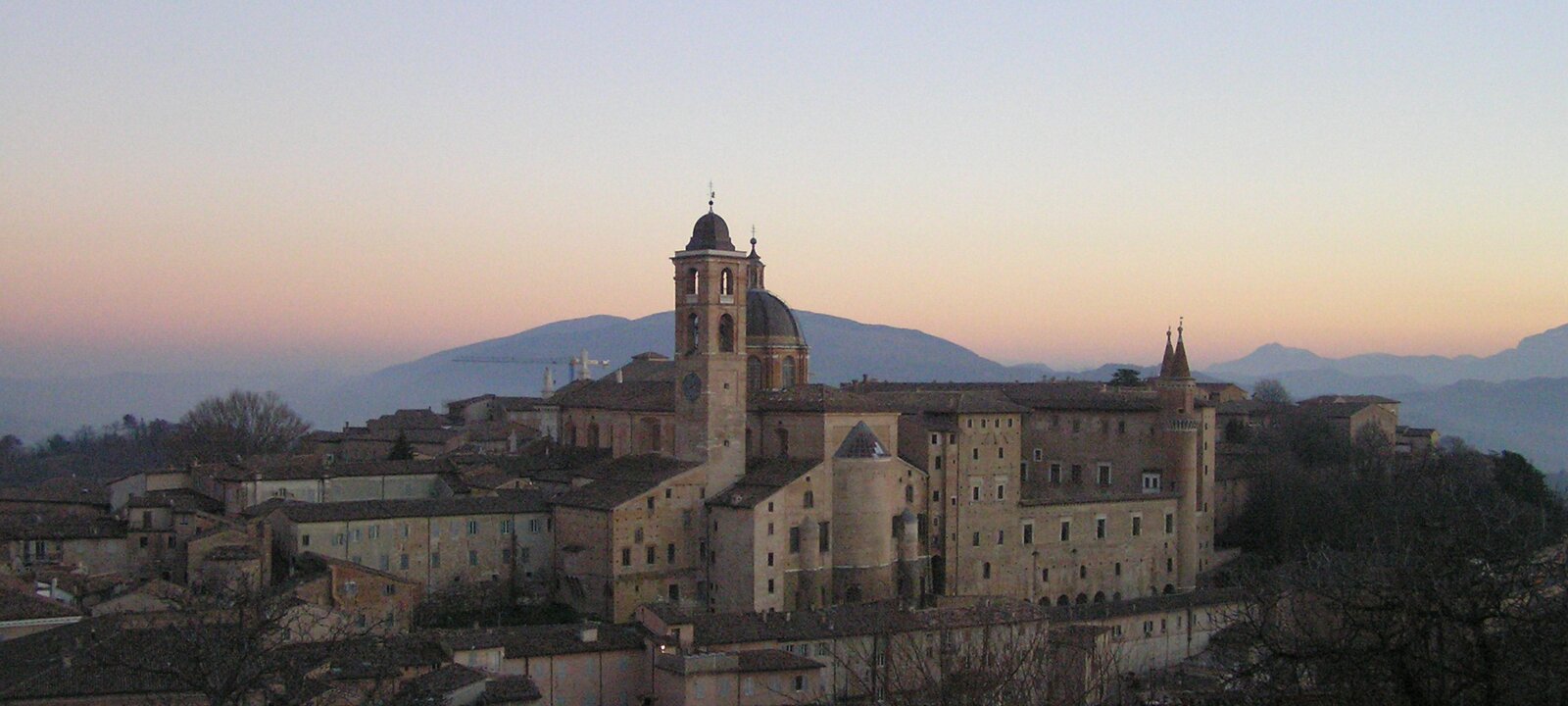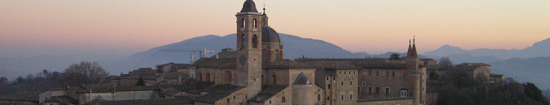 Urbino retains a 16th century appearance, largely frozen in time by a later economic downturn. The ducal palace (Palazzo ducale), 2nd half of the 16th century. Fortress Albornoz, 14th century. Cathedral, rebuilt in 1801. Left: palazzo ducale, right: cathedral TurinVenice Labels