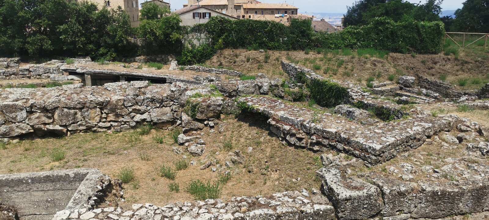 Etruscan-Roman acropolis. Sanctuary, 7th century BCE. Etruscan temple, further reused in the Roman era. Etruscan temple, 3rd century BCE. Etruscan temple, 3rd century BCE. Roman cistern, 1st century CE, with enough capacity for 1000 people - almost the full population of Volterra then. Baptistery Labels