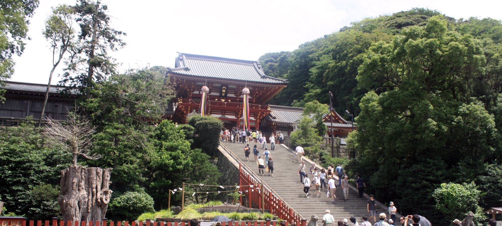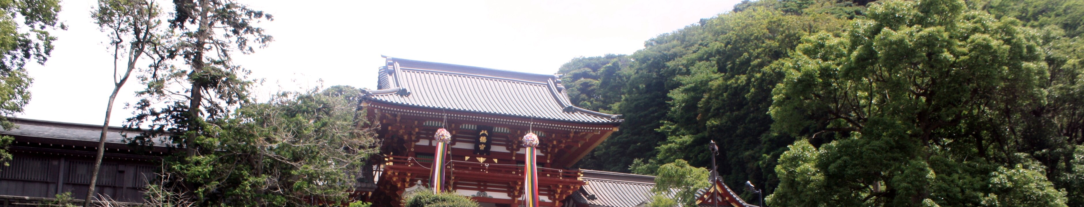 Tori on the way to the part of the city where most shrines and temples can be found. Hachiman-gu sanctuary was originally built in 1063 on the sea shore and moved to Kamakura in 1191. It is dedicated to the god of war. Daigyo-ji Temple Labels