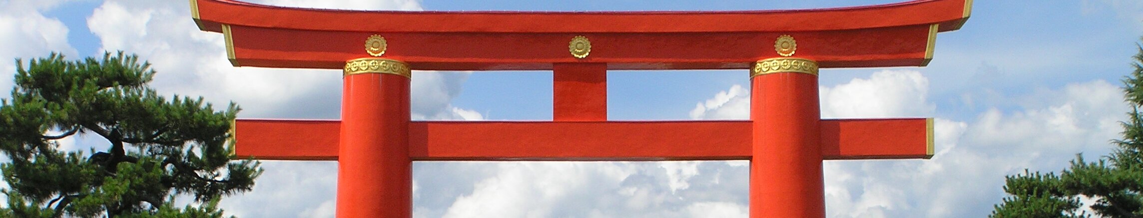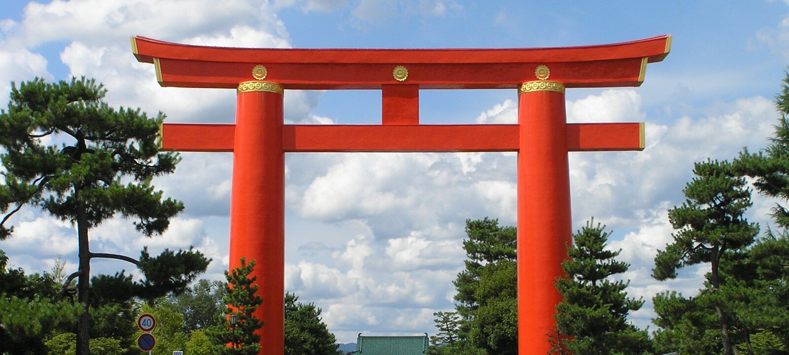 Gate to the Heian shrine, a Shinto shrine, built in 1895. Overview of the shrine. Shrine gardens. Chion-In templeKiyomizu-Dera Temple Labels
