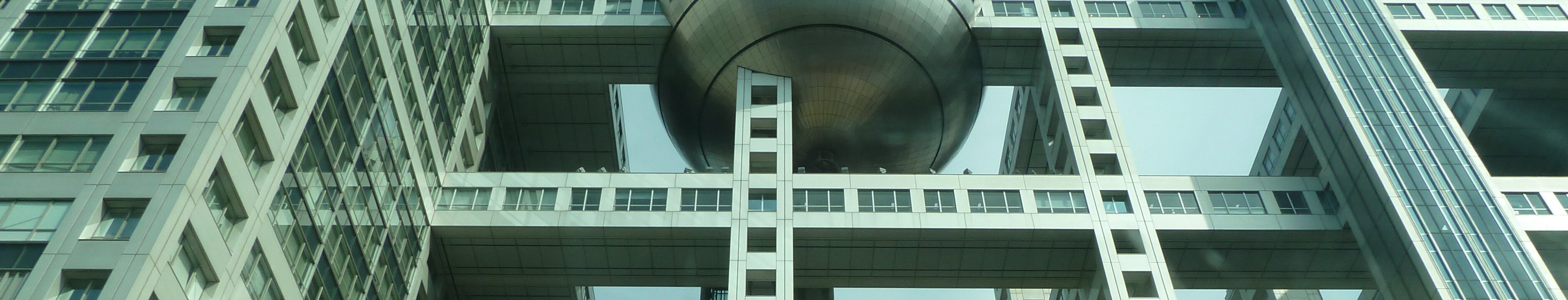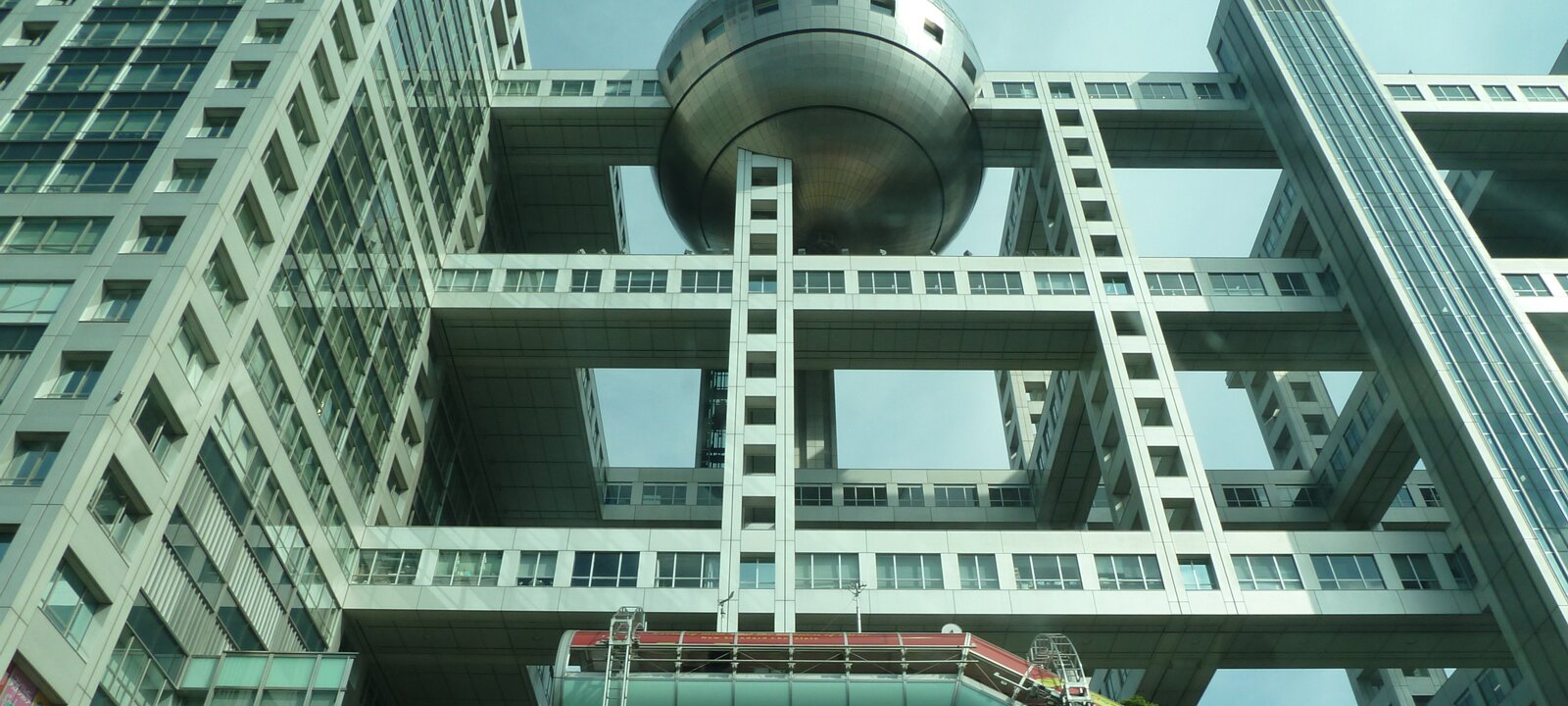 The Odaiba area, a set of polders with modern and tall buildings, is served by a monorail train. Statue of liberty, replica installed in 2000. Fuji Television building. National MuseumSenso-Ji Labels
