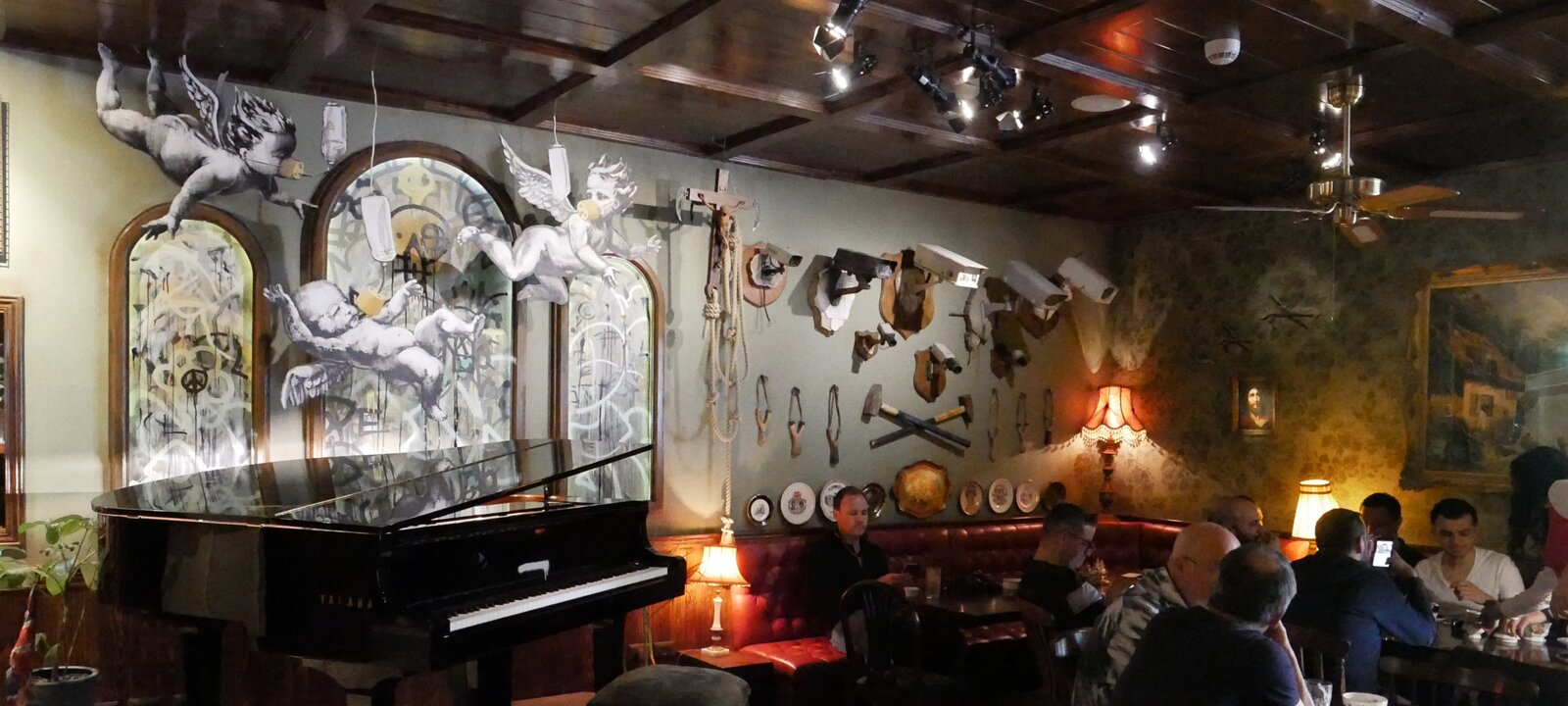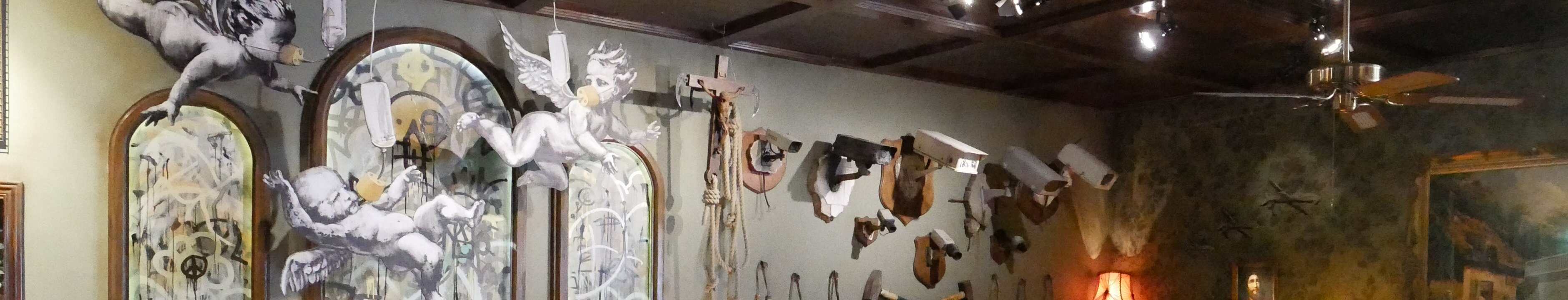 Walled off hotel, funded by Banksy. Each room faces the wall.