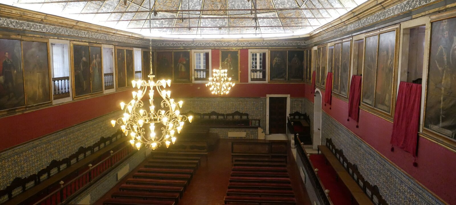 Private exam room, formerly the king's quarters. Ceiling from 1701, walls lined with 38 rectors from the 16th to the 18th centuries.