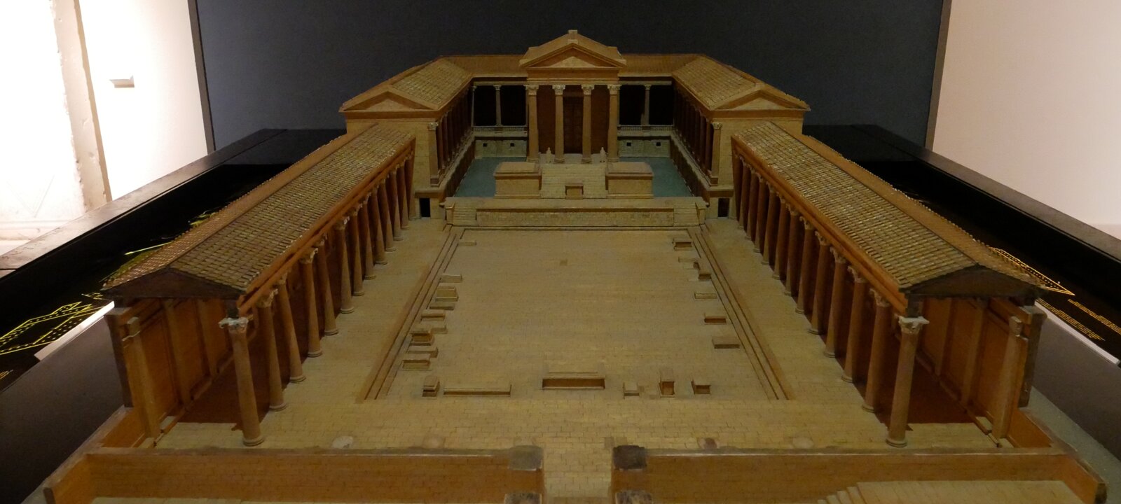 The roman city of Conimbriga was entirely remodeled in 70AD and a new forum was dedicated to the imperial cult.