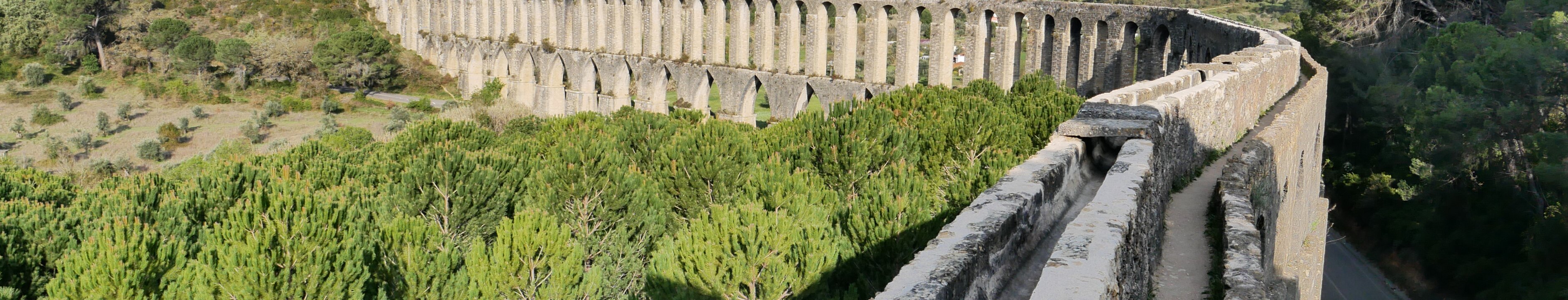 Aqueduct of the convent of Christ, built to supply water to the convent of Christ in Tomar, 6km long, construction started in 1593, completed in 1614. Sedimentation / filtering station. Sedimentation / filtering station. Monastery Labels