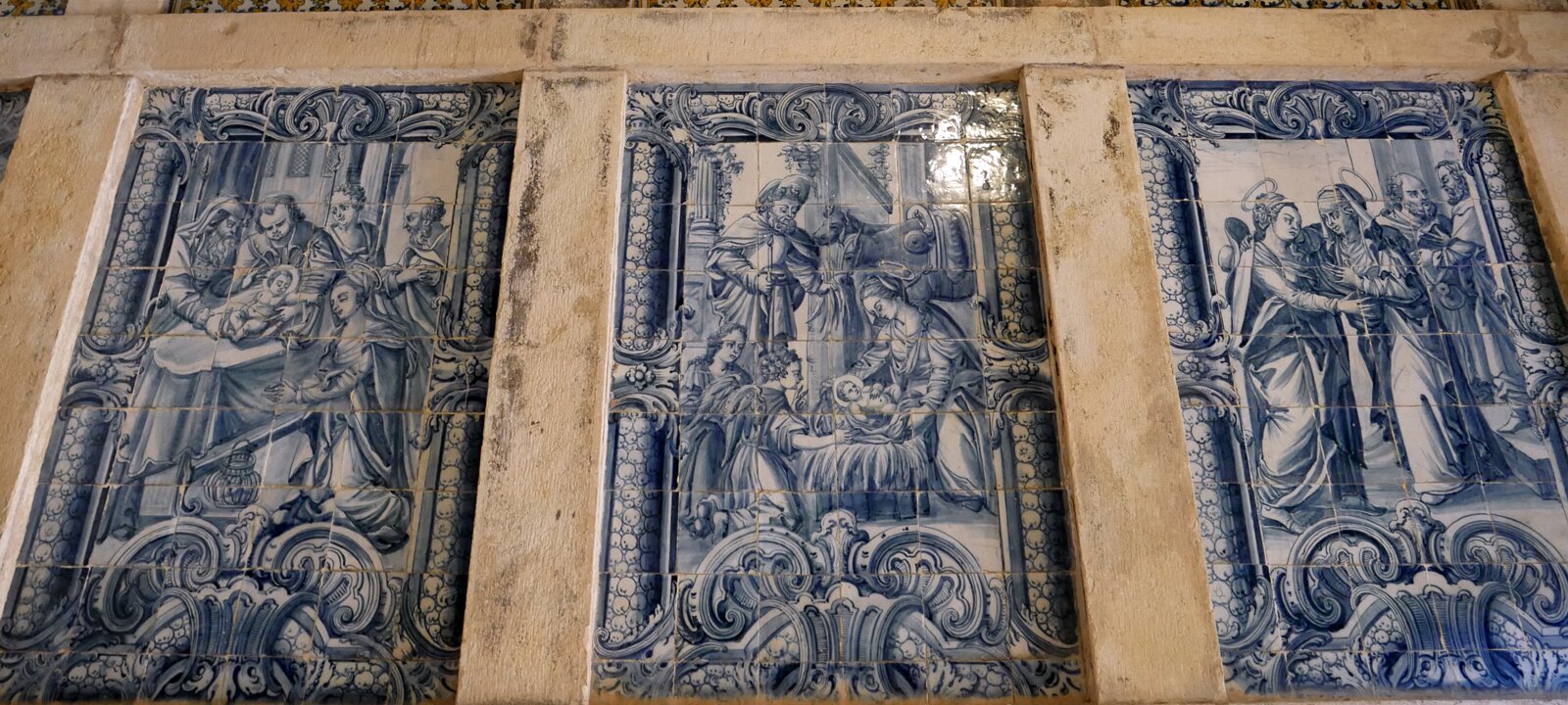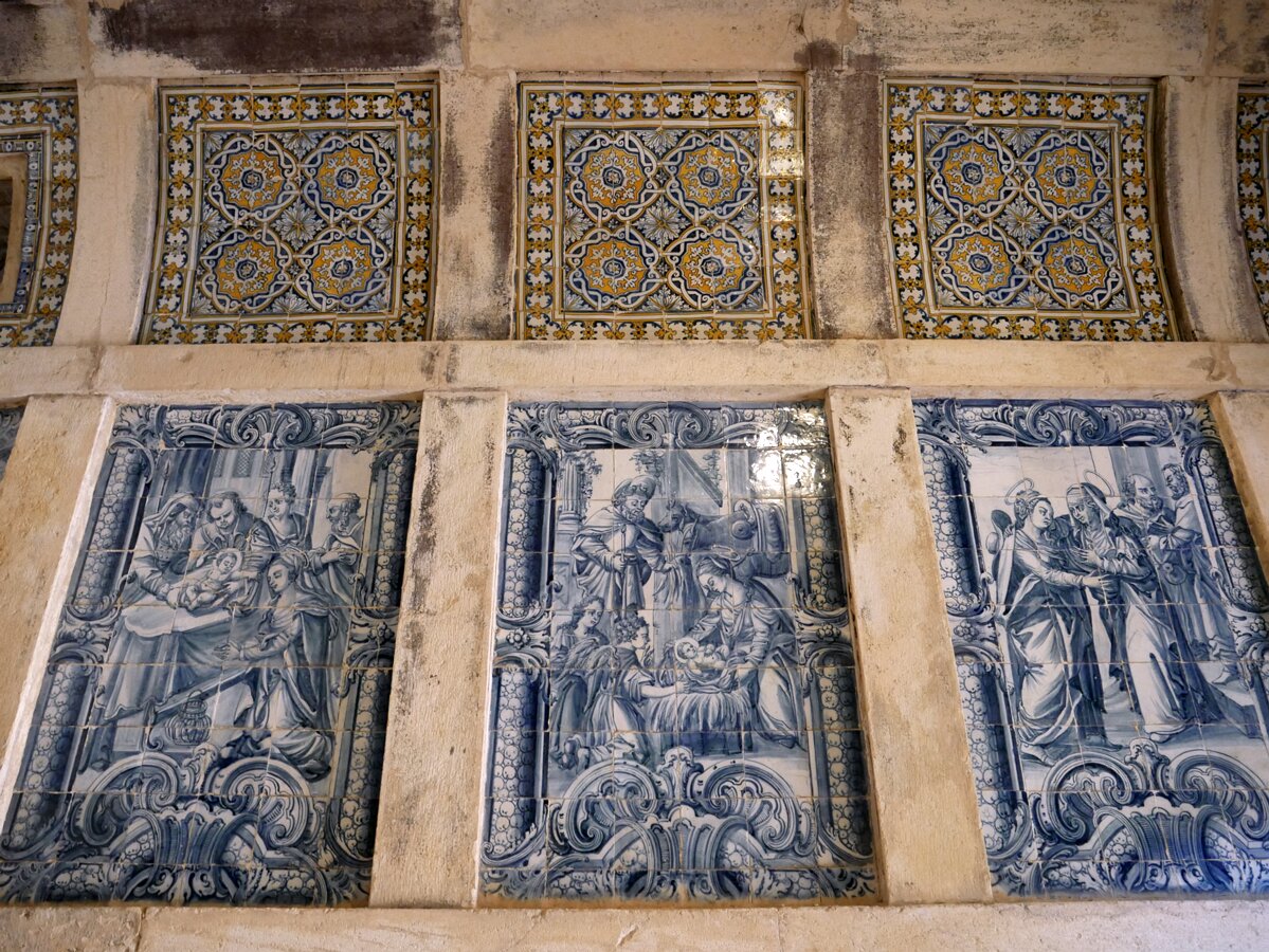 Chapel of Antonio Portocarreiros, his wives and their descendants, built in 1626. The azulejo tiles are from the 17th centuries with scenes from the life of Mary and Christ from the 18th century. The azulejo tiles are from the 17th centuries with scenes from the life of Mary and Christ from the 18th century. The azulejo tiles are from the 17th centuries with scenes from the life of Mary and Christ from the 18th century. The azulejo tiles are from the 17th centuries with scenes from the life of Mary and Christ from the 18th century. Main cloisterRotunda Labels