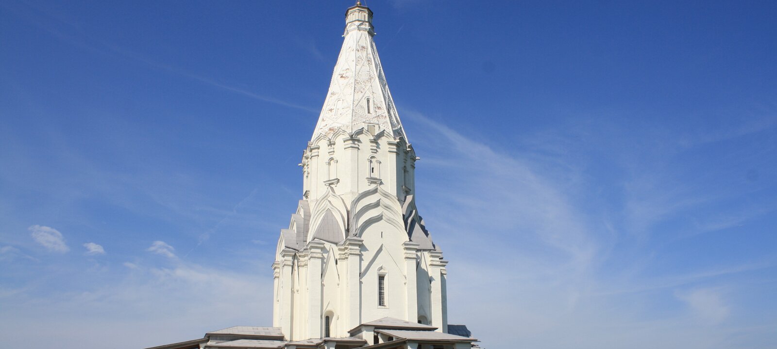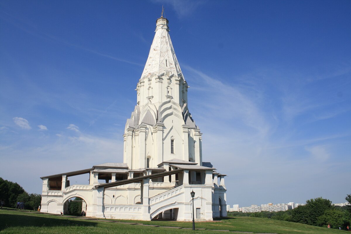 Front gate, 1672. Entrance of the Tsar's courtyard. Front gate, 1672. Entrance of the Tsar's courtyard. Church of the Ascension, 1532, built by an Italian architect. The church is the first tent-roof stone church in Russia. Church of the Ascension, 1532, built by an Italian architect. Church of the Ascension, 1532, built by an Italian architect. Water tower, 2nd half of the 17th century. Bell tower, 1st half of the 16th century. Church of our lady of Kazan, mid-17th century, used as the family chapel of the palace of tsar Mikhailovitch. Back gate to the tsar's courtyard, 1673. Back gate to the tsar's courtyard, 1673. Museum of wooden architecture Labels
