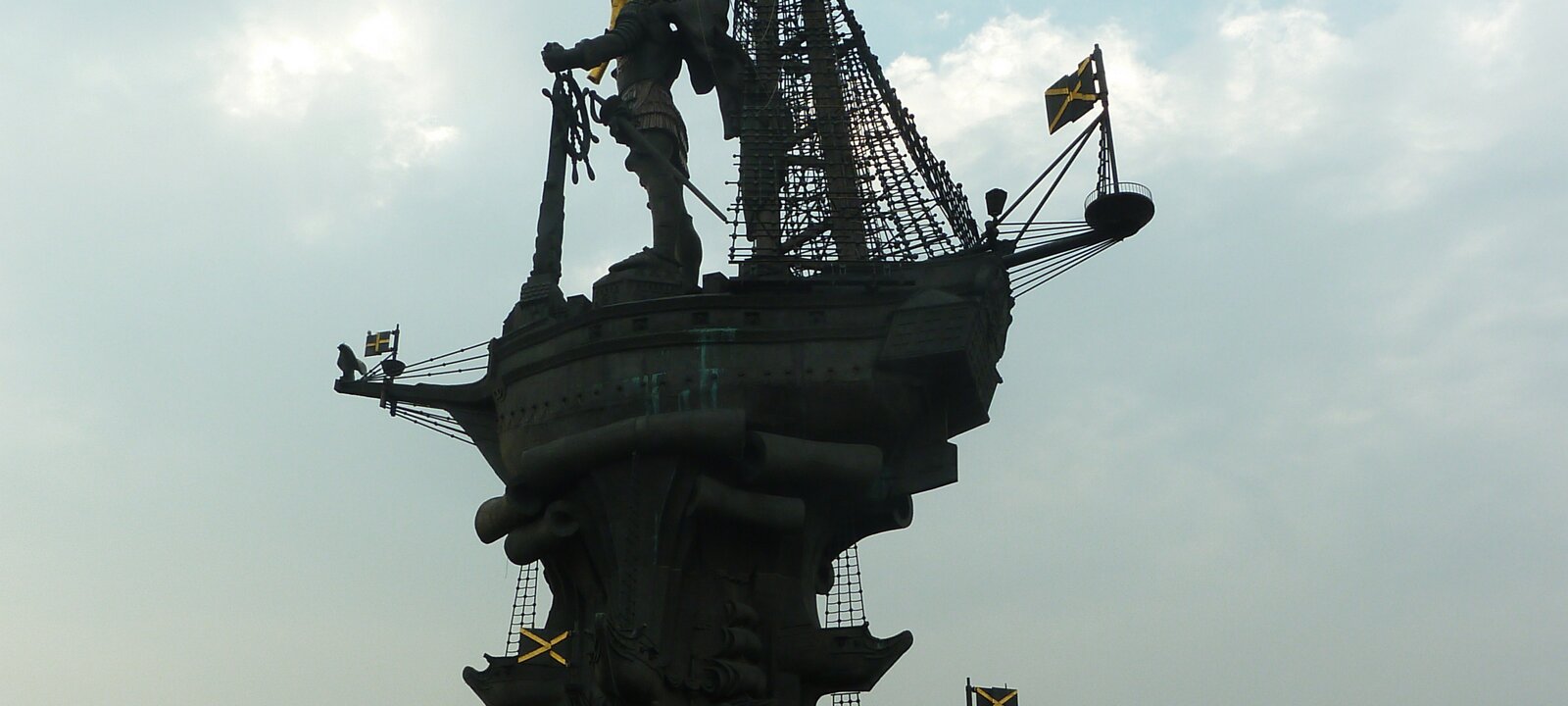 Statue of Peter the Great, erected in 1997, 98m tall, 1000 tons. The statue was designed by Zurab Tsereteli from Georgia to commemorate 300 years of the Russian Navy, established by Peter the Great. Novodevichy ConventPetrovka Street Labels