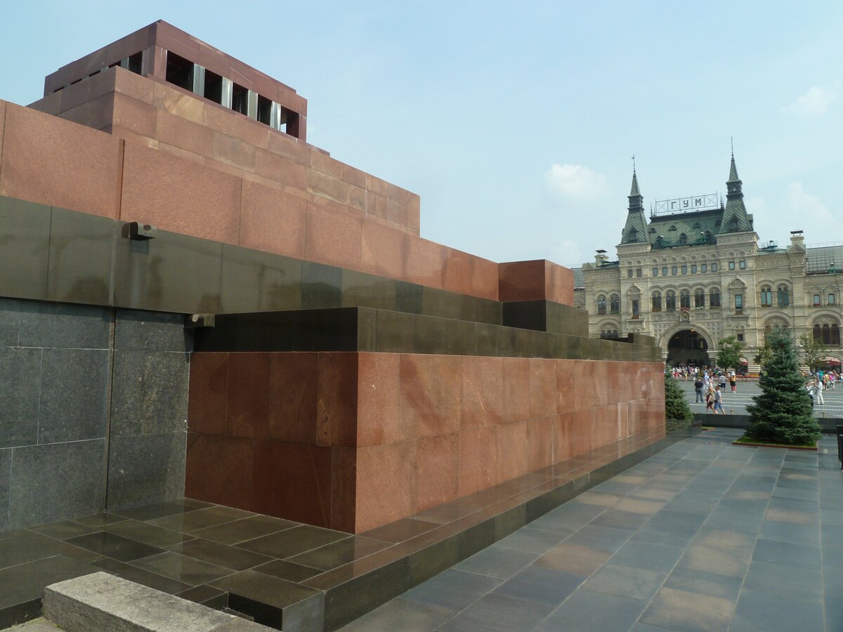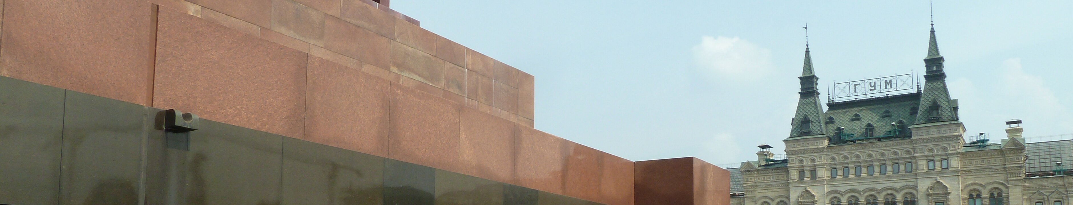 Lenin's Mausoleum, built in 1930, to serve as a tomb and exhibition building for Lenin's body. Lenin died on 21 January 1924. Cemetery for leading Russian citizens. Josef Stalin's grave. Stalin's body was exhibited along Lenin's body between 1953 and 1961. Josef Stalin's tomb. Stalin's body was exhibited along Lenin's body between 1953 and 1961. Yuri Gagarin's tomb. GUMSaint Basil Cathedral Labels