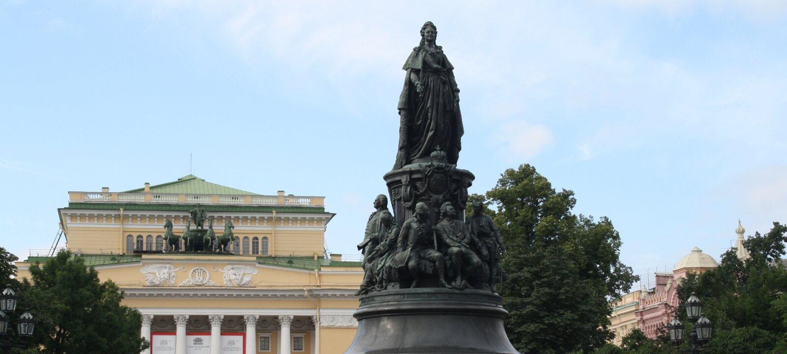 Alexandra theater, Carlo Rossi, 1830. Alexandra theater. Statue of Catherine II the Great, 1873, by Mikechine. The only monument dedicated to Catherine II that was not destroyed during the soviet era. Mikhaylovskaya StreetPassaj Labels