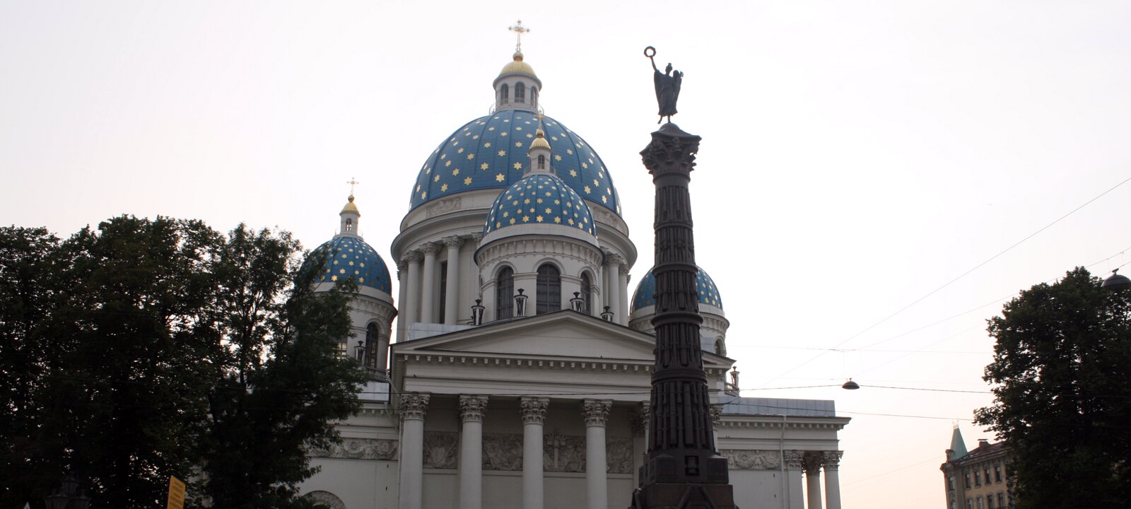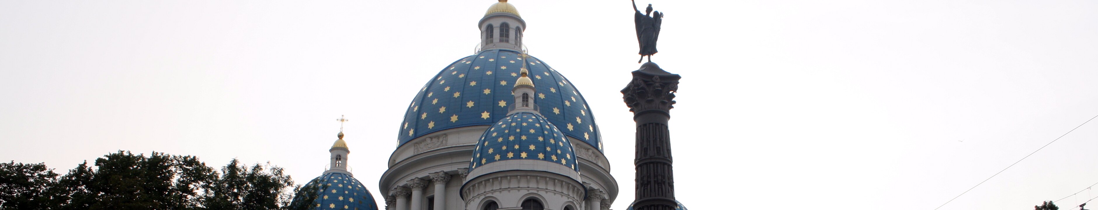 Trinity cathedral, built between 1828-1835 by Vasily Stasov. The top dome is 80m tall. Smolny MonasteryTroitskiy Bridge Labels