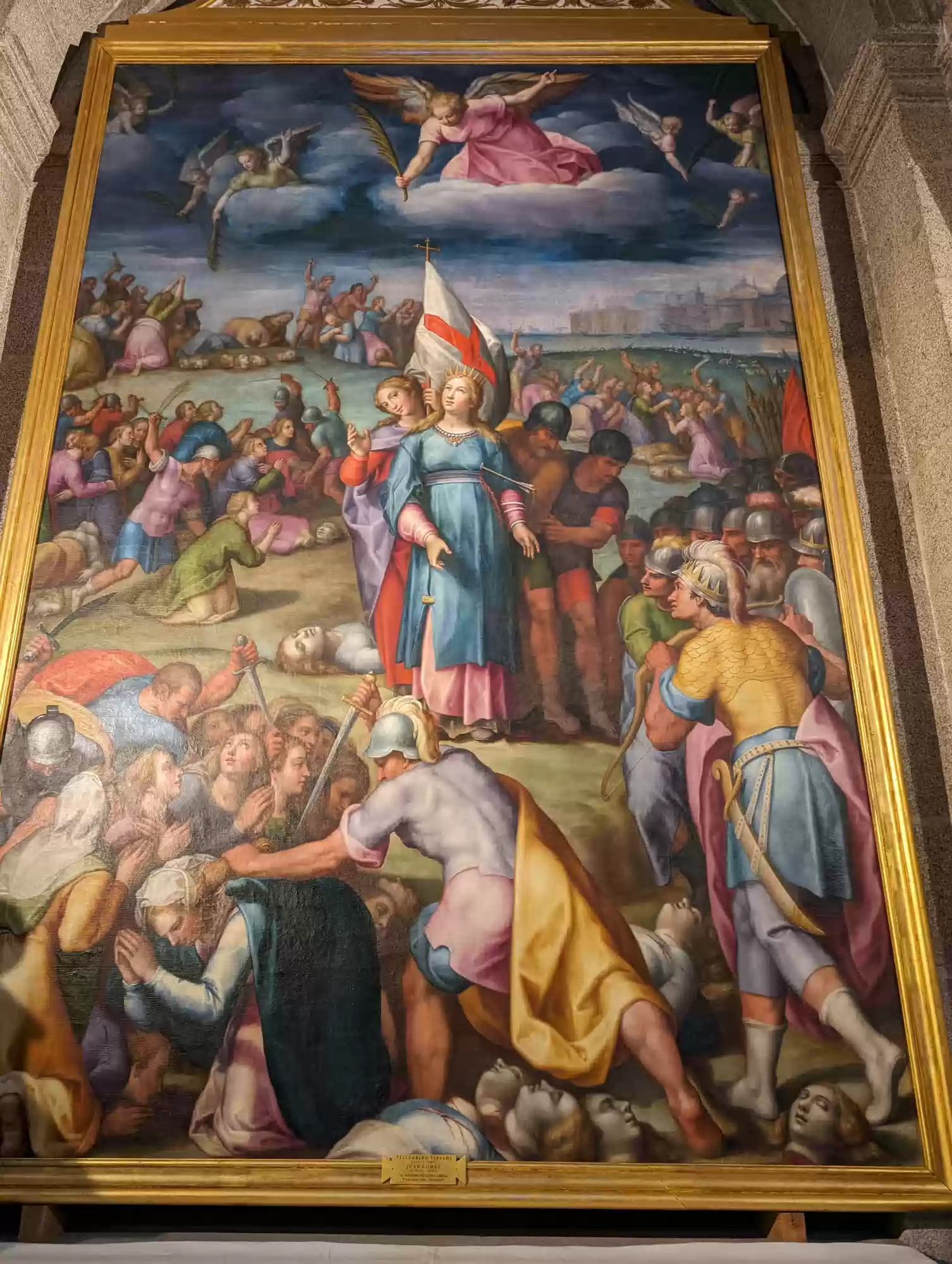 The altarpiece is presided over by a Martyrdom of Saint Lawrence by Tibaldi, who also executed the Epiphany and Adoration of the Shepherds on either side of the…