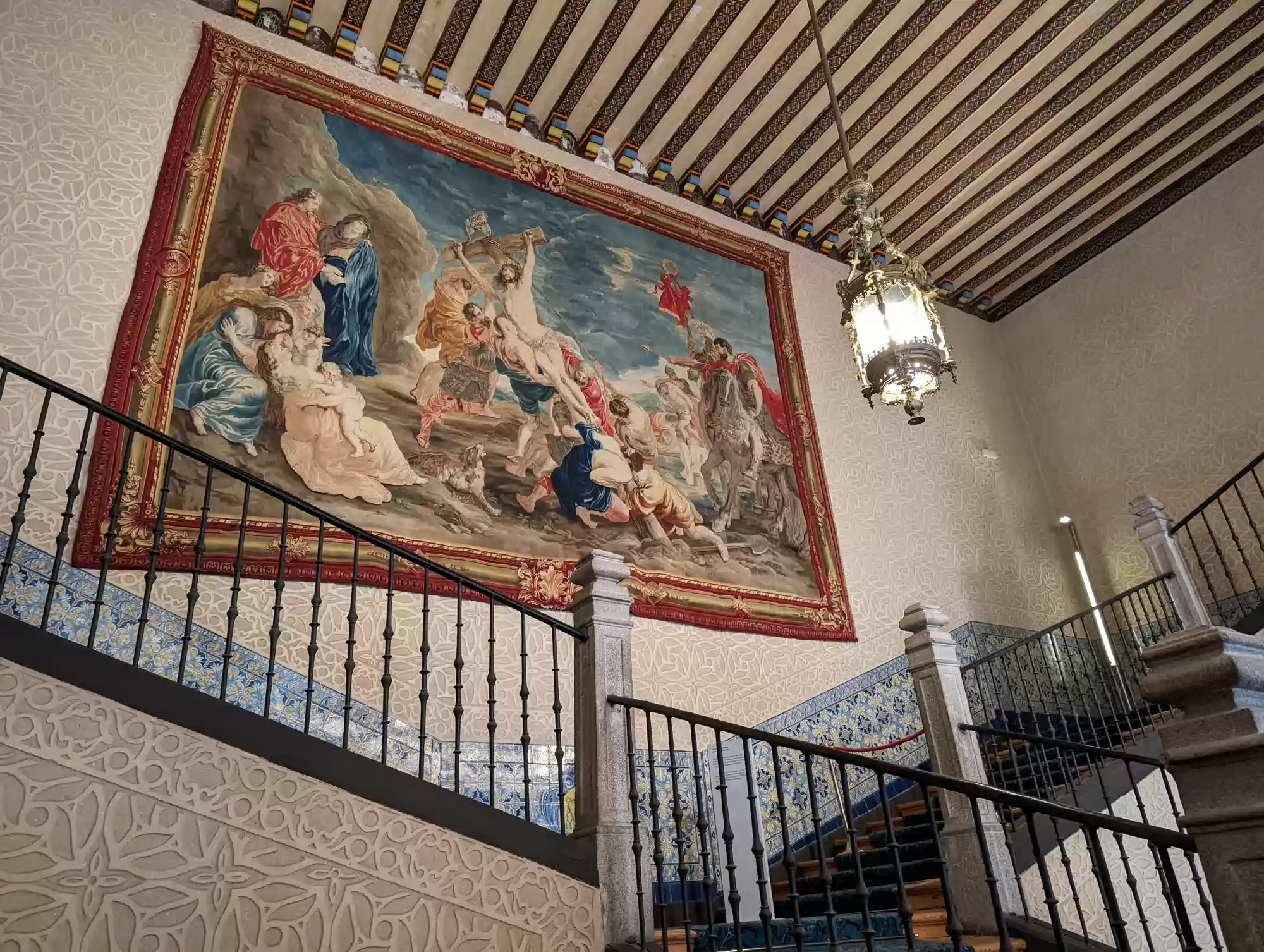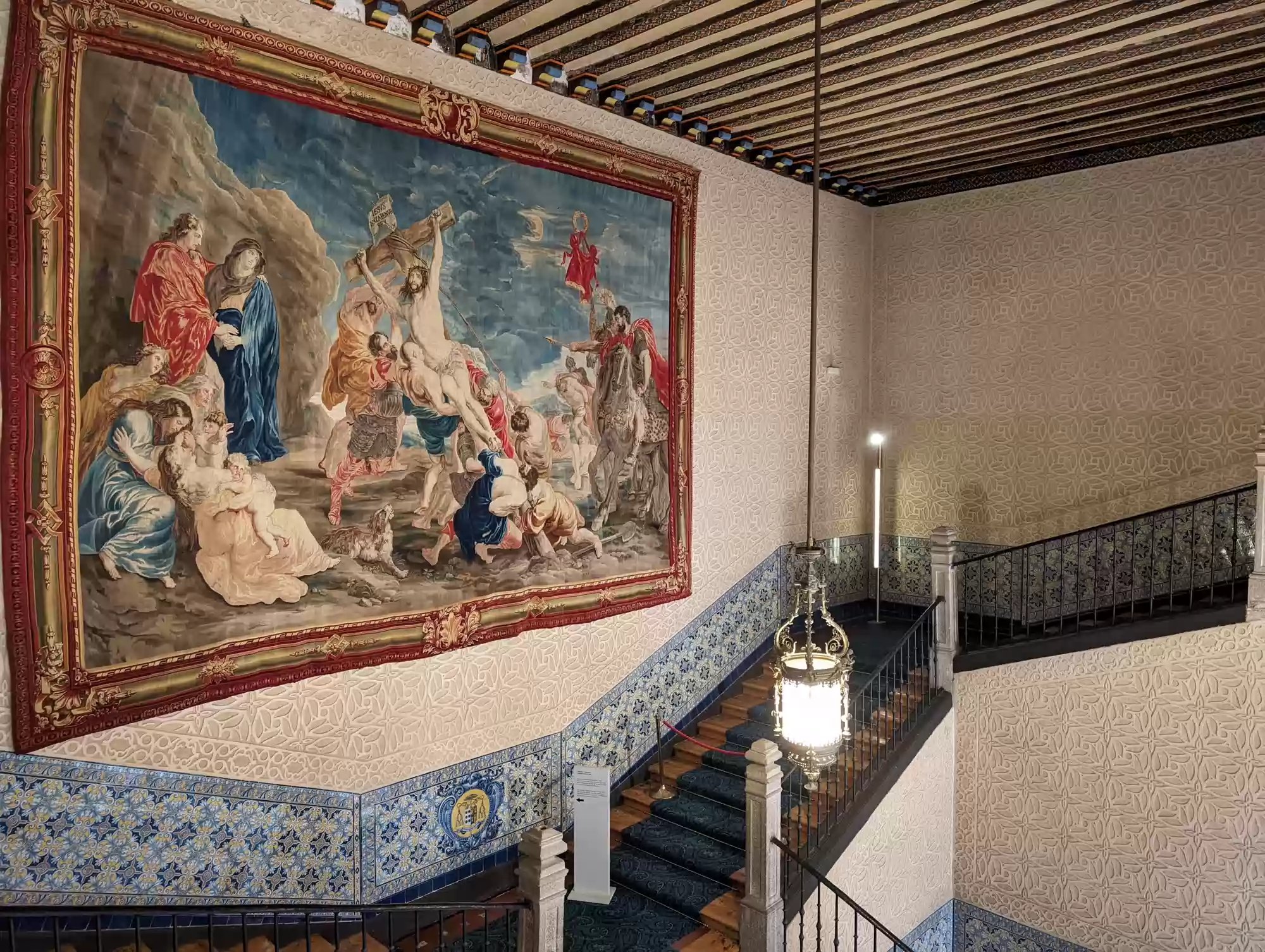 Imperial staircase, 18th century. Tapestry: reproduction of Rubens' triptych The raising of the cross in Antwerp's cathedral.